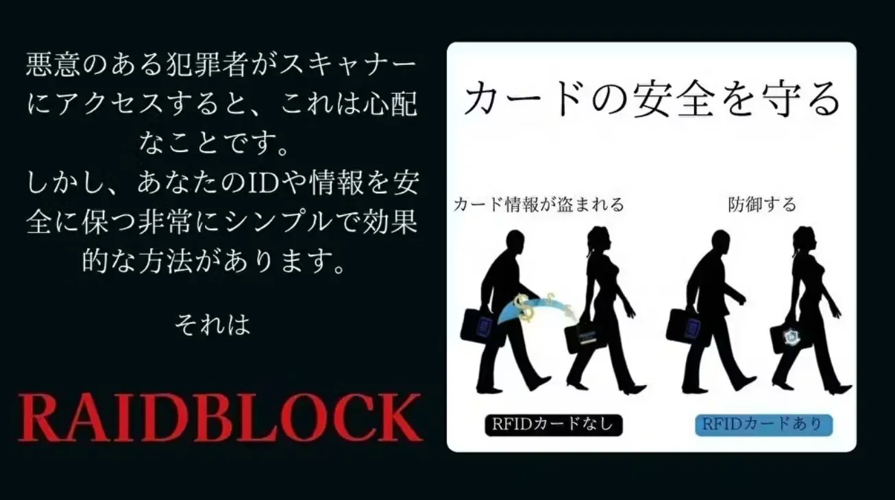 【被害体験から開発】海外でスキミング被害に遭った実行者が、二度と同じ思いをさせないために作った「電波の盾」RAIDBLOCK。財布に1枚入れるだけで、10万回の防御テストをクリアした特殊電波が全カードを鉄壁ガード。インパクト抜群の旭日旗デビル&シンプルの2デザインで新登場!