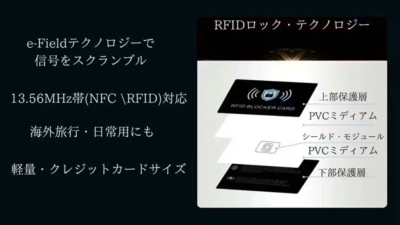 • ✈️ RFID/NFC全対応:クレカ、ICカード、パスポート、社員証。現代のあらゆる非接触決済に対応。