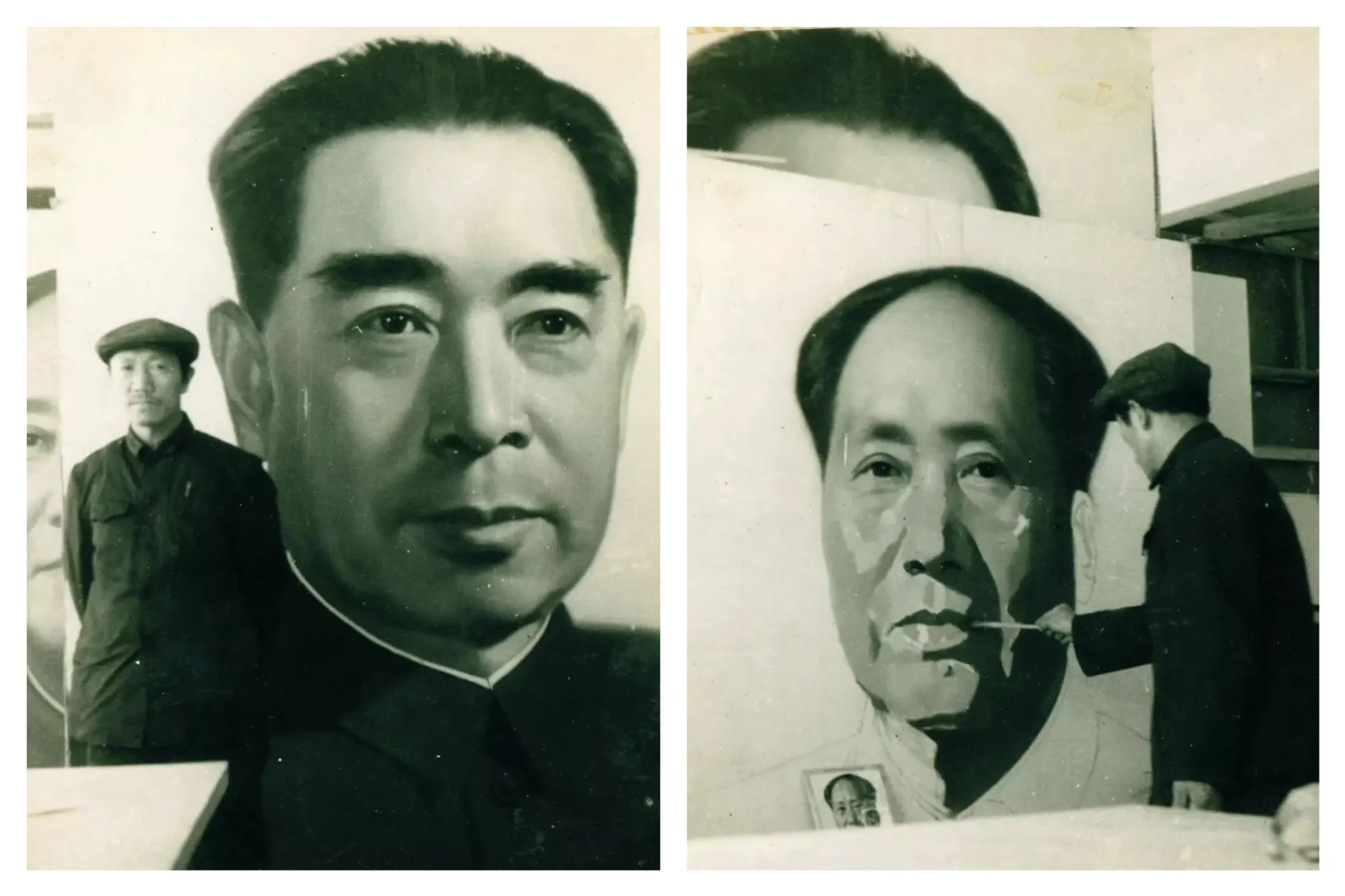 (王可伟氏の父である王策厚氏が、当時指導者の肖像画を制作していた際の写真)