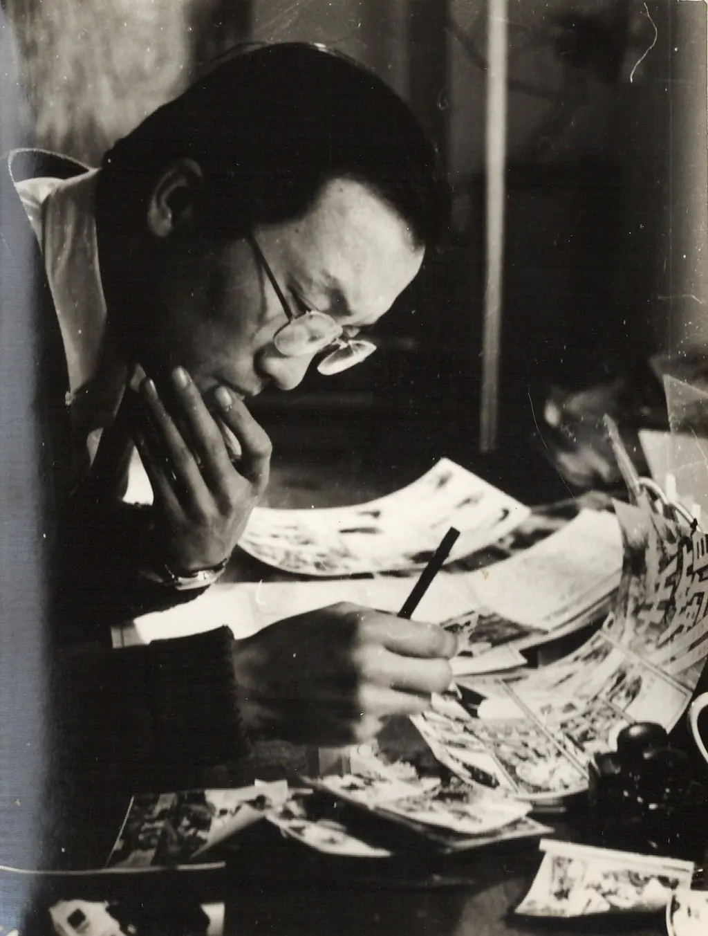 物心ついた頃から、父はいつも書斎の机に向かって座っていました。その机は決して大きくはなく、上には画稿や墨、絵の具、そして未完成の連環画の束が積まれていました。父はいつもうつむきながら、長時間ひたすら描き続け、時には一日中ほとんど席を立つこともありませんでした。