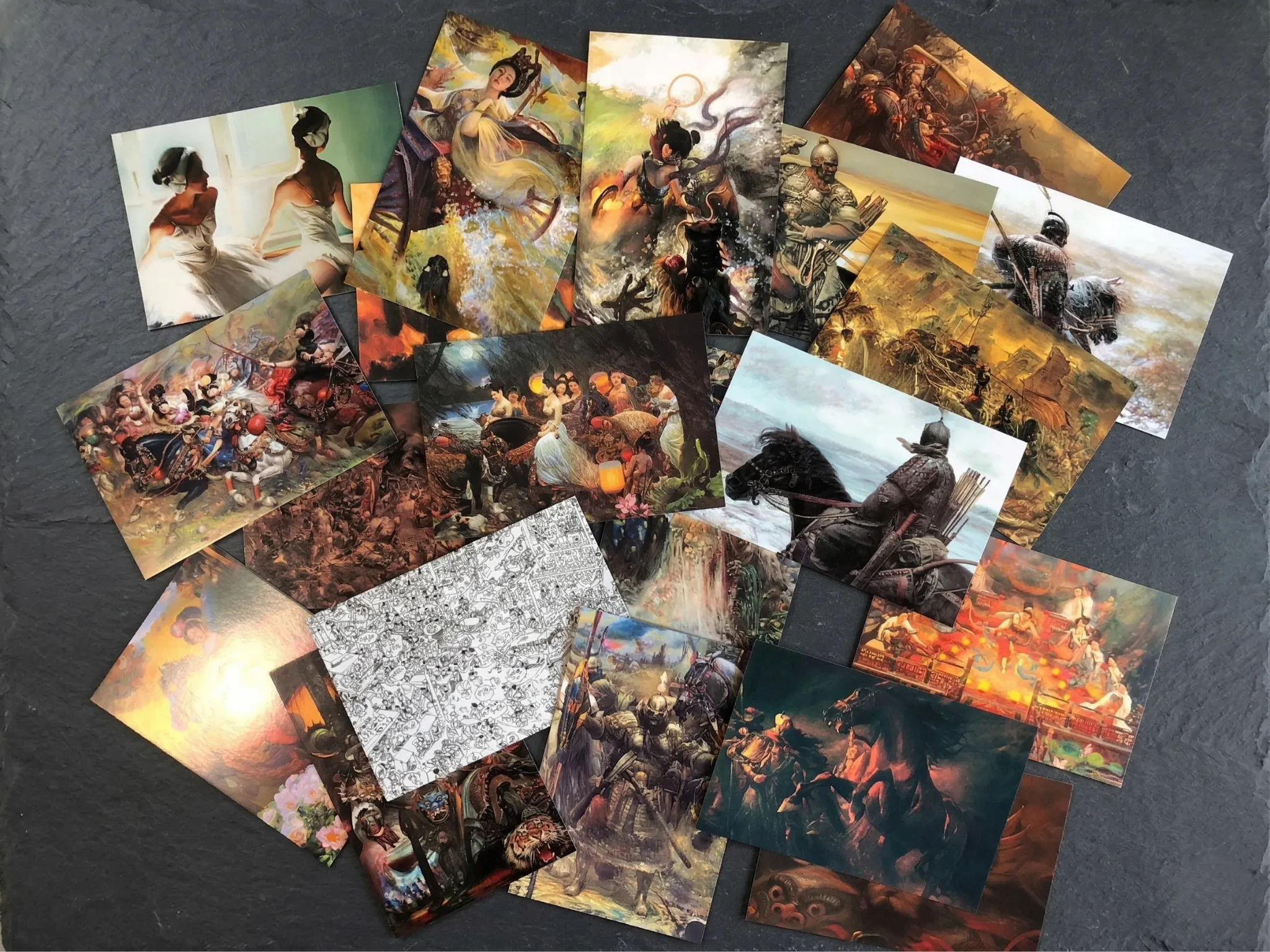 3、5000円【ポストカード10枚セット】デザインはランダムでお届けします,1枚あたりのサイズ:14.8cm × 10cm,高品質350gコート紙を使用,切り抜き窓付き封筒入り。王可偉先生の数多くの優れた作品の中から、ランダムに10枚を選んでお届けします。皆さまの温かいご支援に心より感謝いたします。