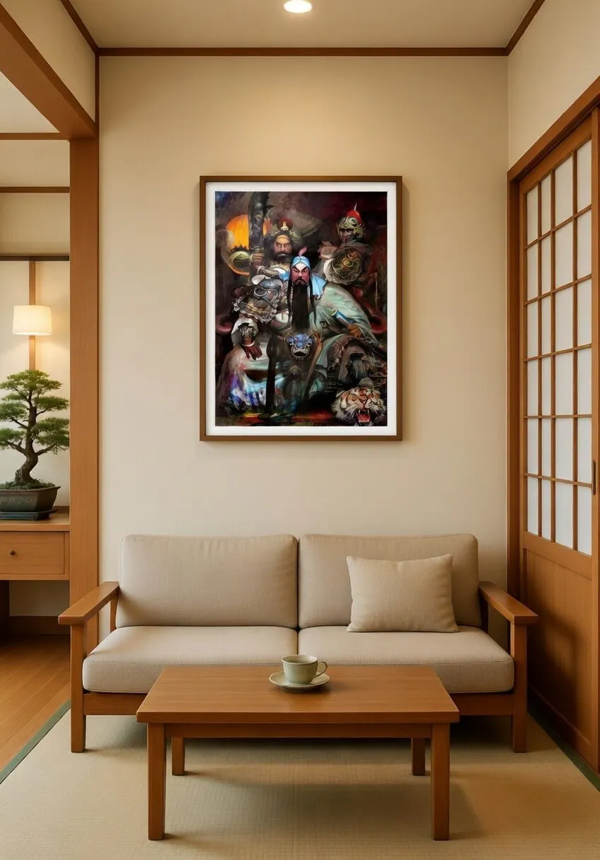 5、39,800円【『武聖』アート複製品(小サイズ)】サイズ:M15(455mm × 652mm),クラシックなサイドフレーム工法で、キャンバスを木製内枠に均等に張り付け ※特記事項:本製品は基本的な木枠装裱のみで、外枠は含まれません,皆さまのご支援に心より感謝いたします。