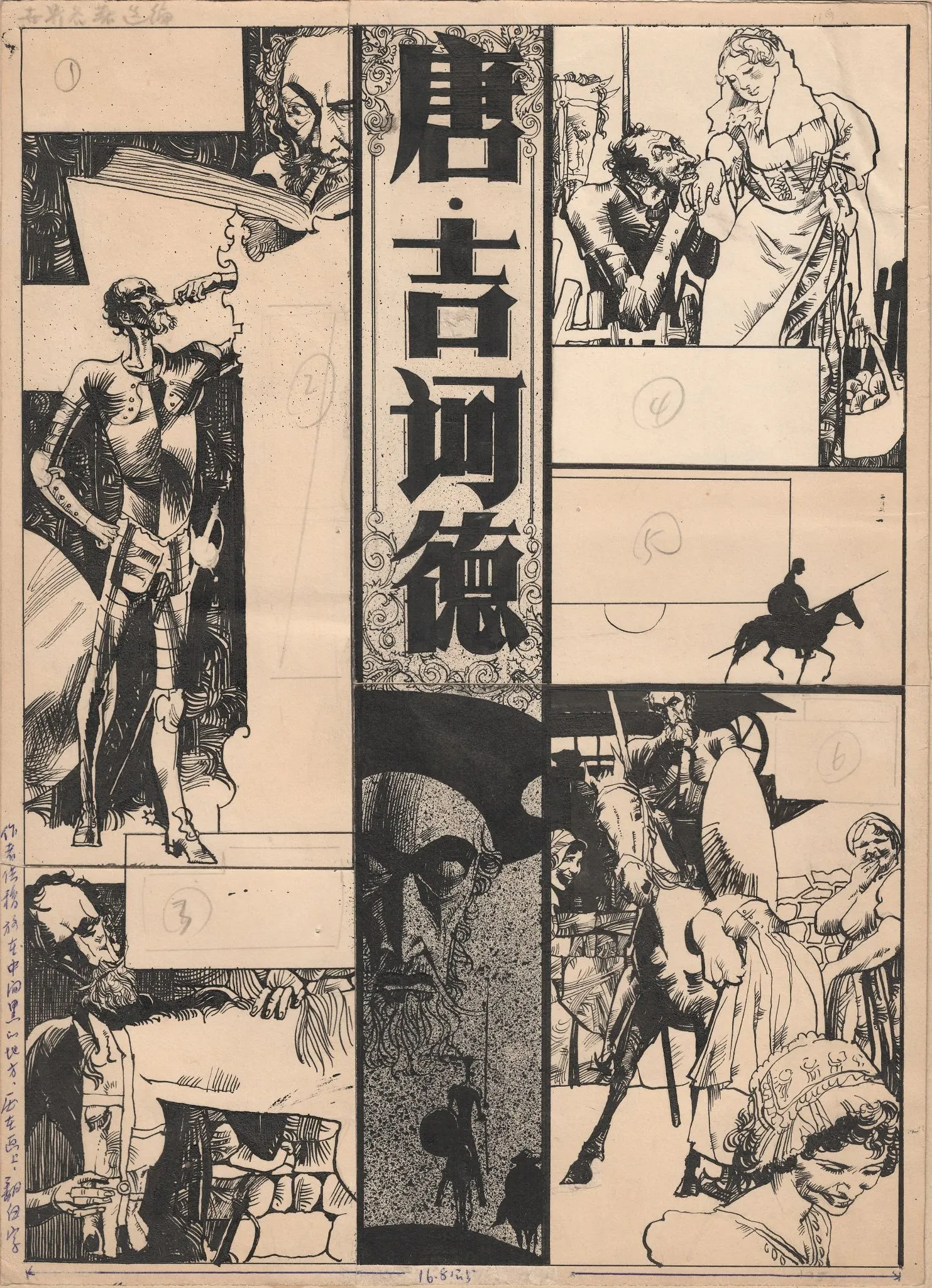 12、5500円【連環画『唐吉诃德』手稿印刷品】 17枚 サイズ:22.5cm*31cm。あなたは本作品の手稿を1:1で再現した高品質印刷品を1枚受け取ることができます。