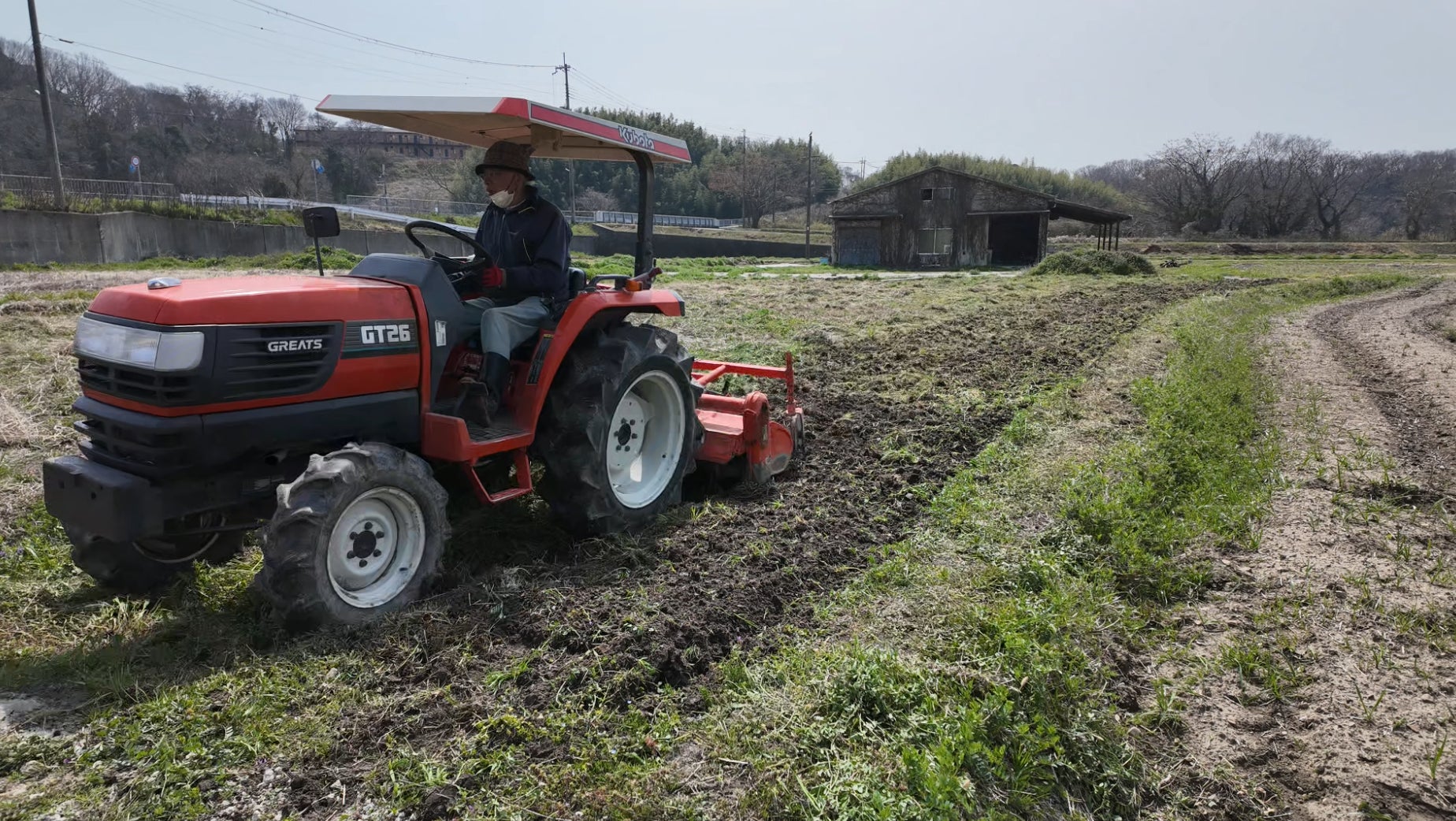 2026年4月11日現在、牛糞堆肥を投入し、トラクターで1回目のすき込みを完了しました。