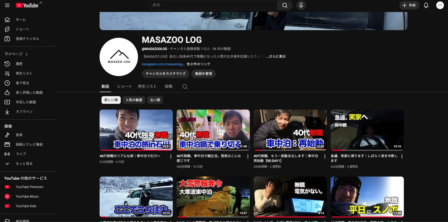 はじめまして。YouTubeチャンネル「MASAZOO LOG」で、車中泊をしながら各地を巡る動画を発信しているMASAZOOです。