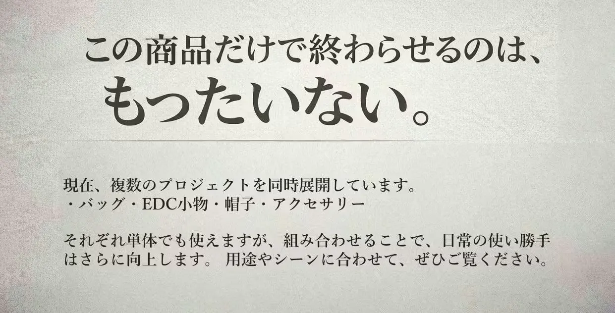 「バッグを持つほどじゃないけど、ポケットでは足りない。」 そんな中途半端な不便を感じたことはありませんか? スマホ、財布、イヤホン、モバイルバッテリー。 毎日持ち歩く“ちょうど必要なもの”。 それだけを、ちょうどよく持てるバッグを目指しました。
