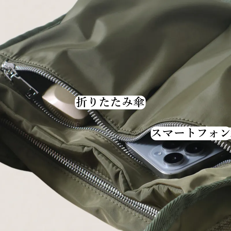 • 急な雨でも中身を守る撥水素材。