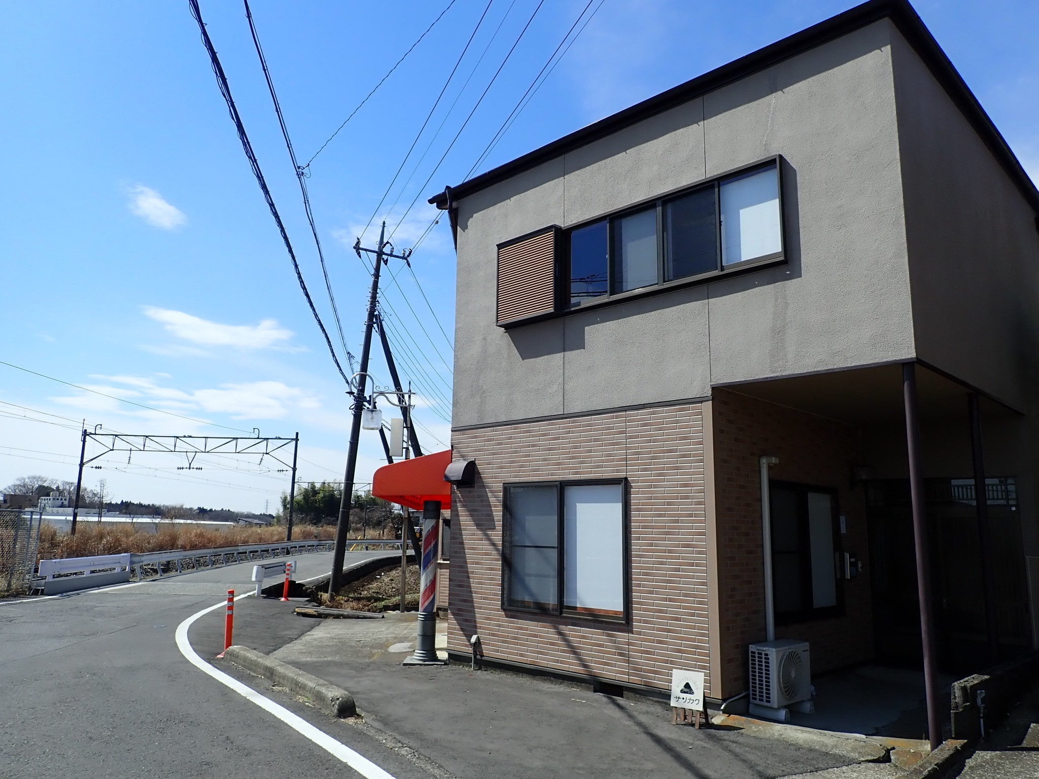 床屋さんでお馴染みのサインポールが目印です。