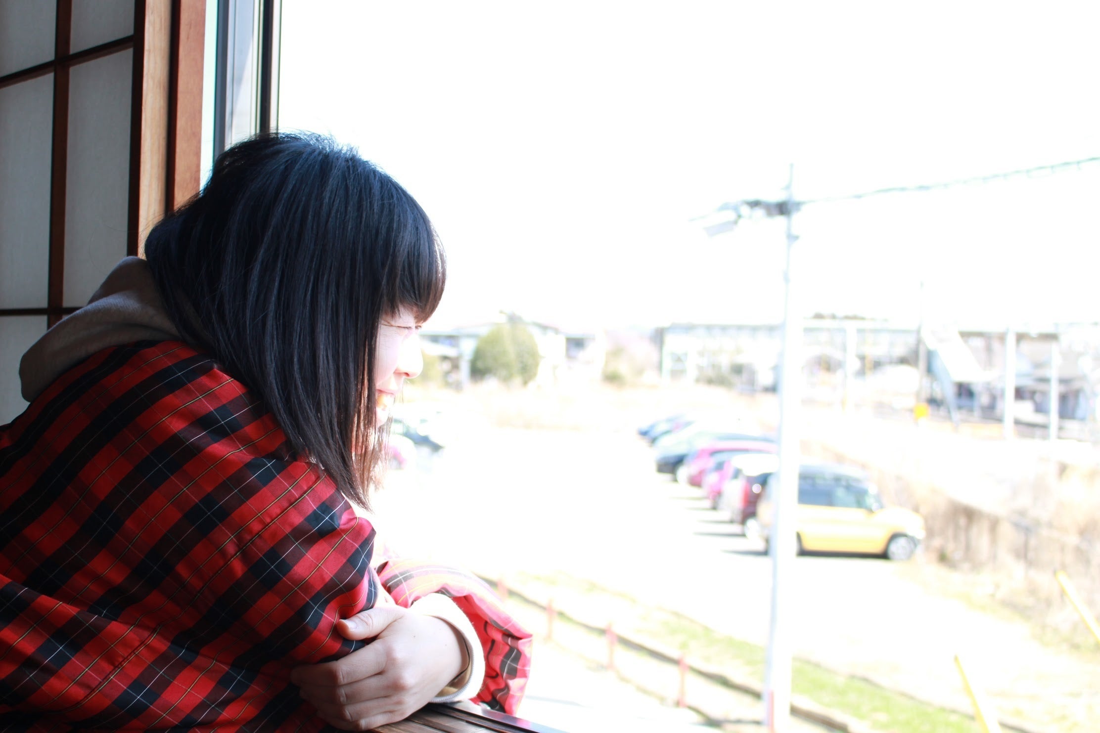 向かいの線路。夕方は味のある風景が広がります。陽当たりがいい 2 階は昼寝するのに最高で、窓から見る夕陽はどこか懐かしさがあります。 なんといっても堀炬燵のある和室は私の1番大好きな部屋で、皆さんとおしゃべりがができるように談話室として利用しようと思っています。