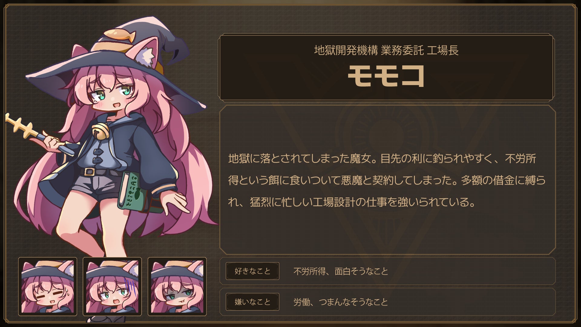 借金ダルマの主人公、Lazy Witchことモモコ。本人の意向とは裏腹に、ライン設計は大忙しです