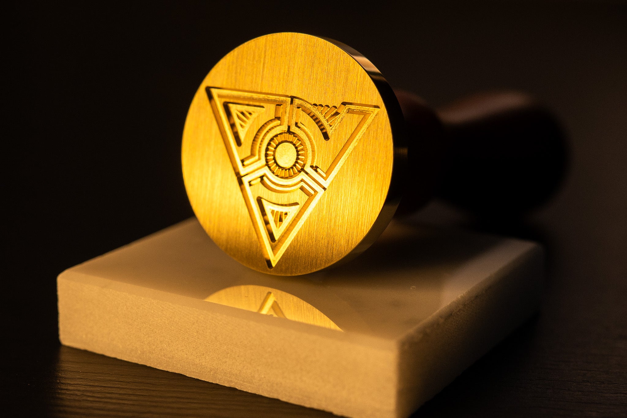 押印例。シールのアイコン部分を金色に塗装しております