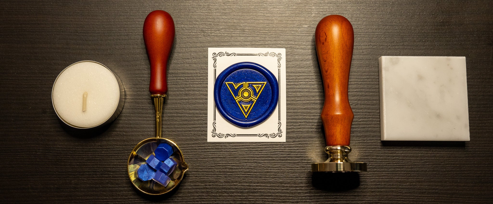 付属品:スタンプ本体、蝋、蝋用スプーン、蝋燭、押印台、押印サンプル