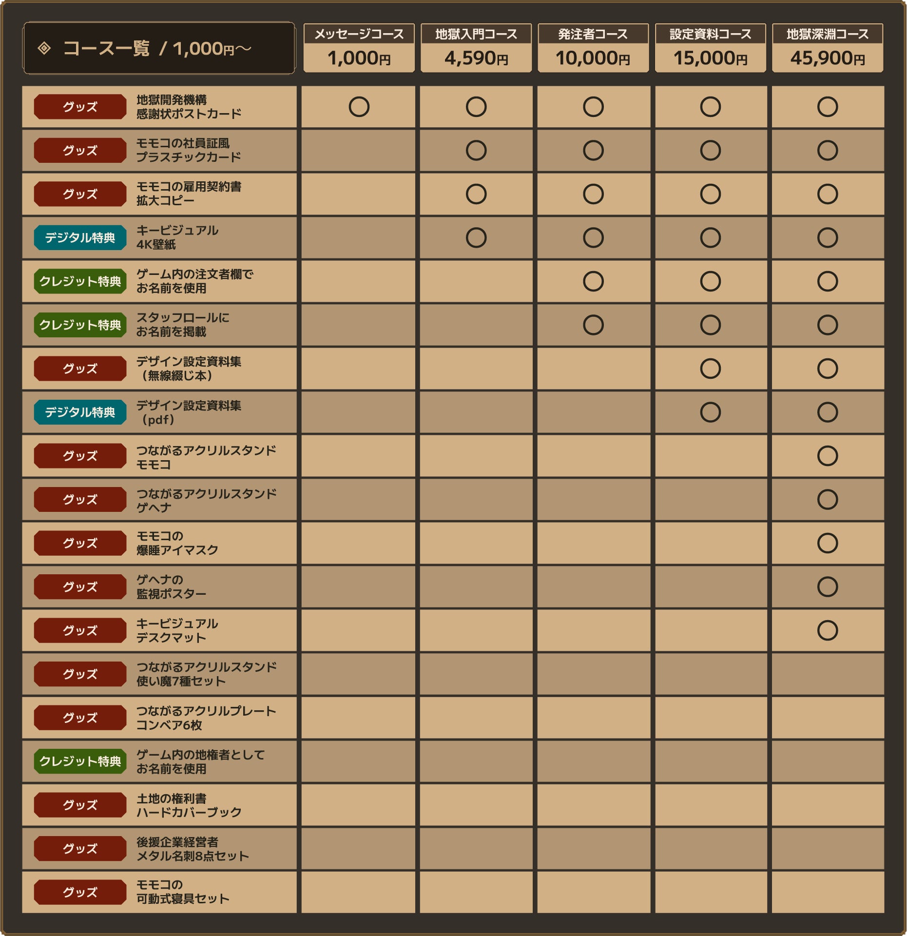 モモコ / ゲヘナは「地獄深淵コース 45,900円 ~」以上の全てのコースに、