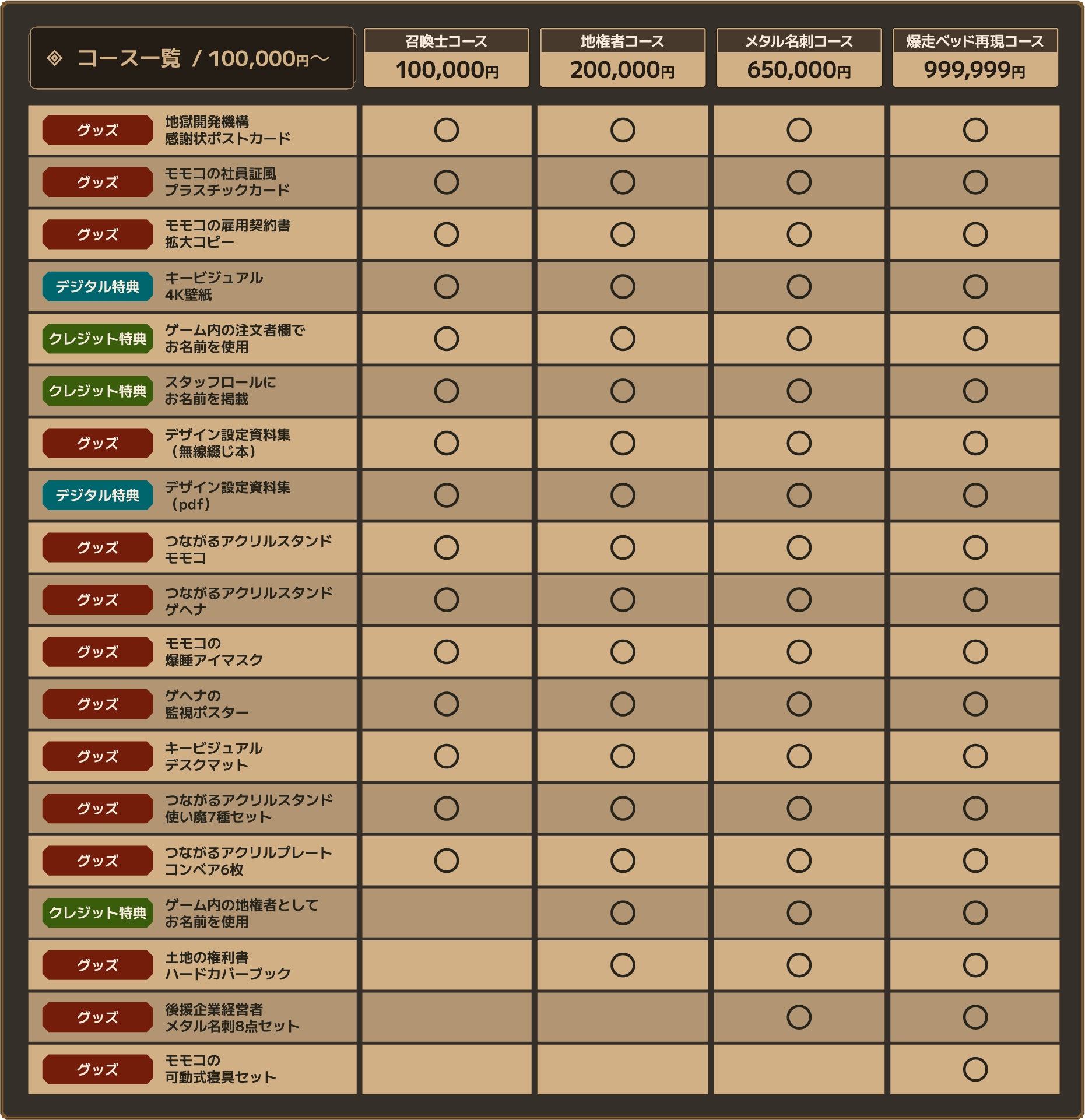 なお、「単品コース」を除く全コースは、下位コースのリターンを全て含んでおります。ご注意ください。
