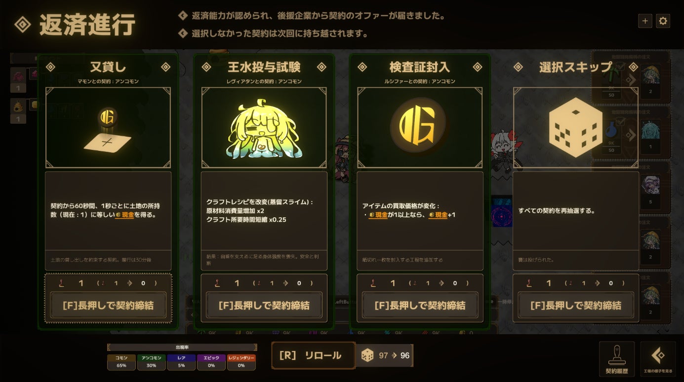 現在、難易度を上げるほど借金額が伸びる仕様ですが、別軸の妨害を加え、遊び応えを強化します。