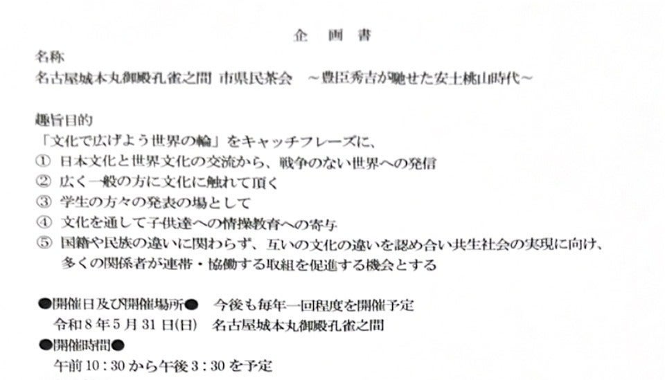 私たちは、名古屋城という特別な場所で、日本の伝統文化の一つである「茶道」を広く伝え、