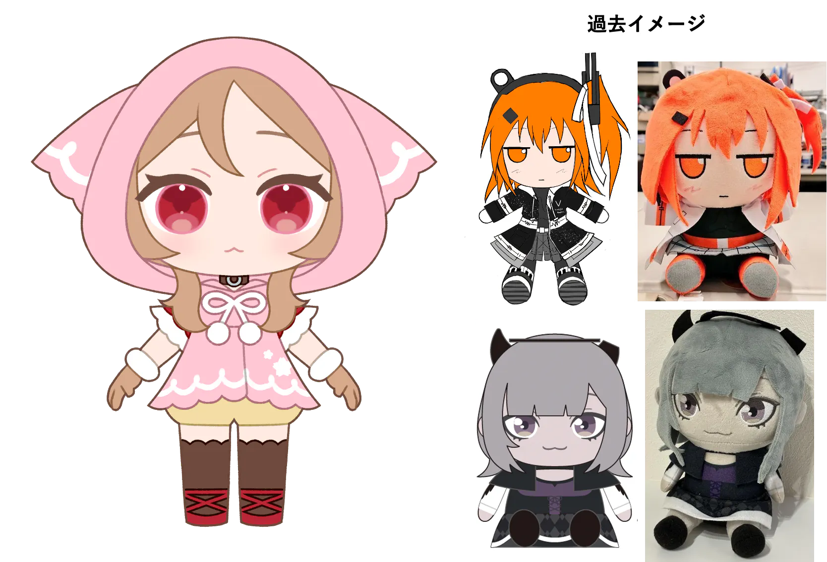 櫻歌ミコのSDキャラデザインを踏襲したぬいぐるみを製作します。お座りポーズで制作予定です。