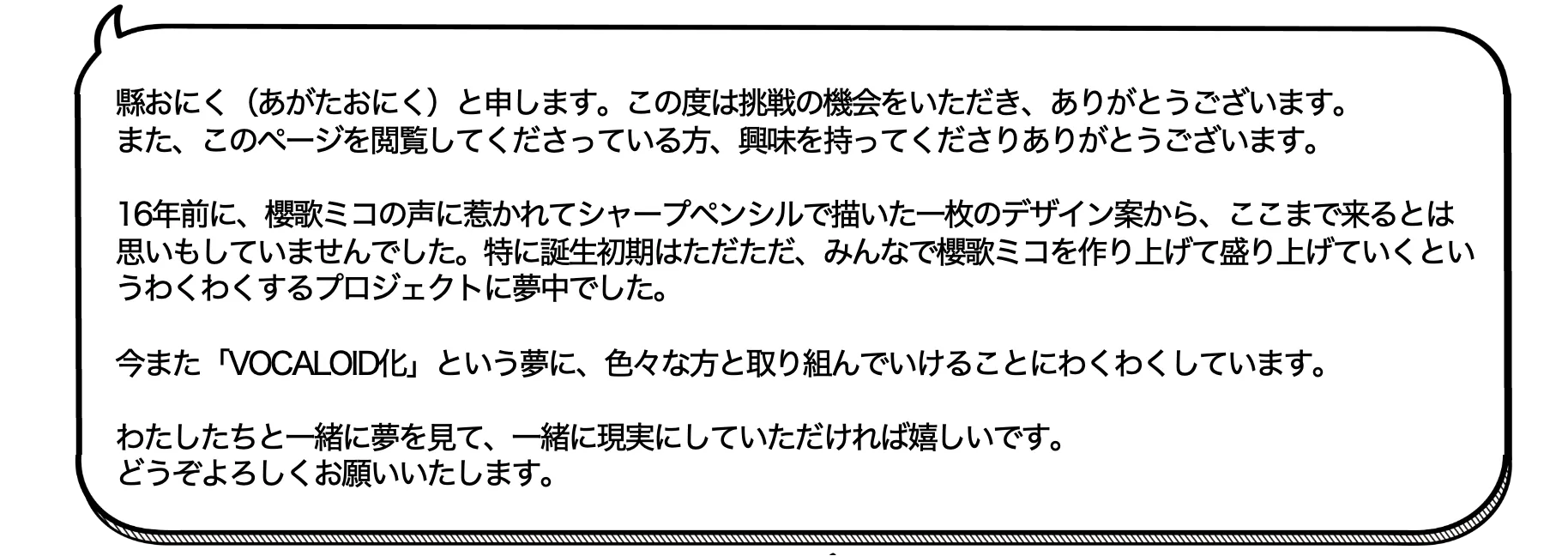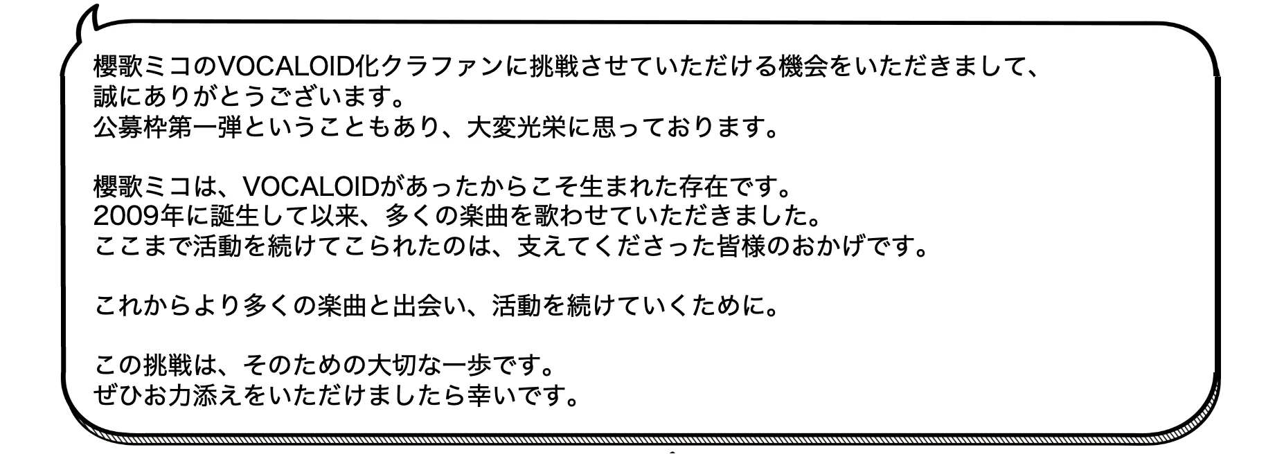 そして、櫻歌ミコ様には公募枠で選ばれた最初の挑戦者として、ボカロ化に挑戦いただきたいと考えております。