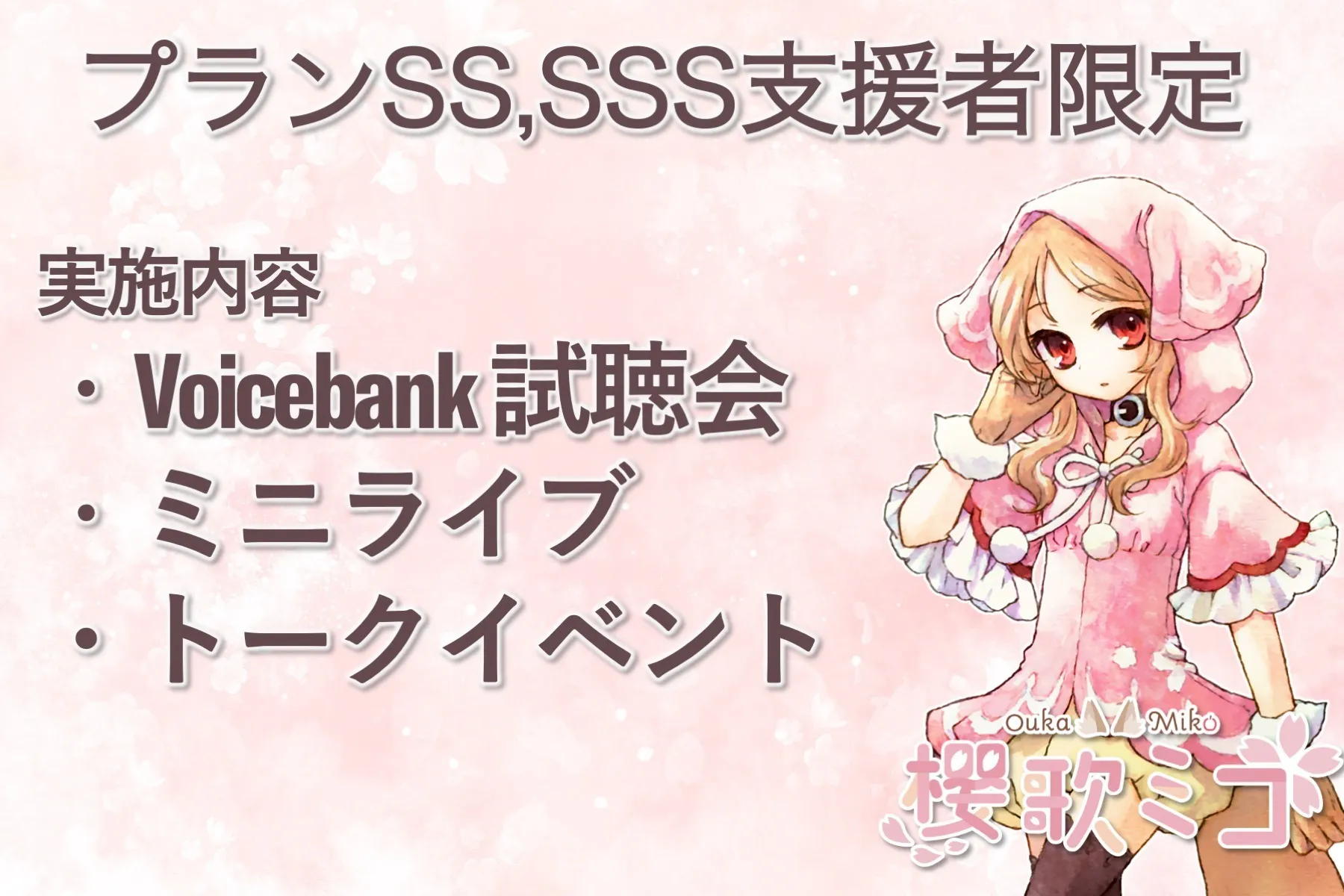 プランS以上をご支援いただくと開発中のVOCALOID Voicebank 櫻歌ミコを先行体験いただけます。