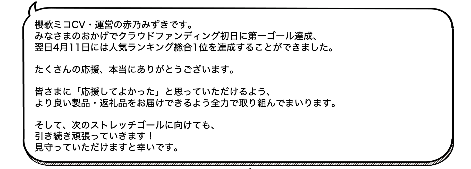 ボカロ版櫻歌ミコ様の活動をさらに盛り上げていくためにも、引き続きご支援のほどよろしくお願いいたします。