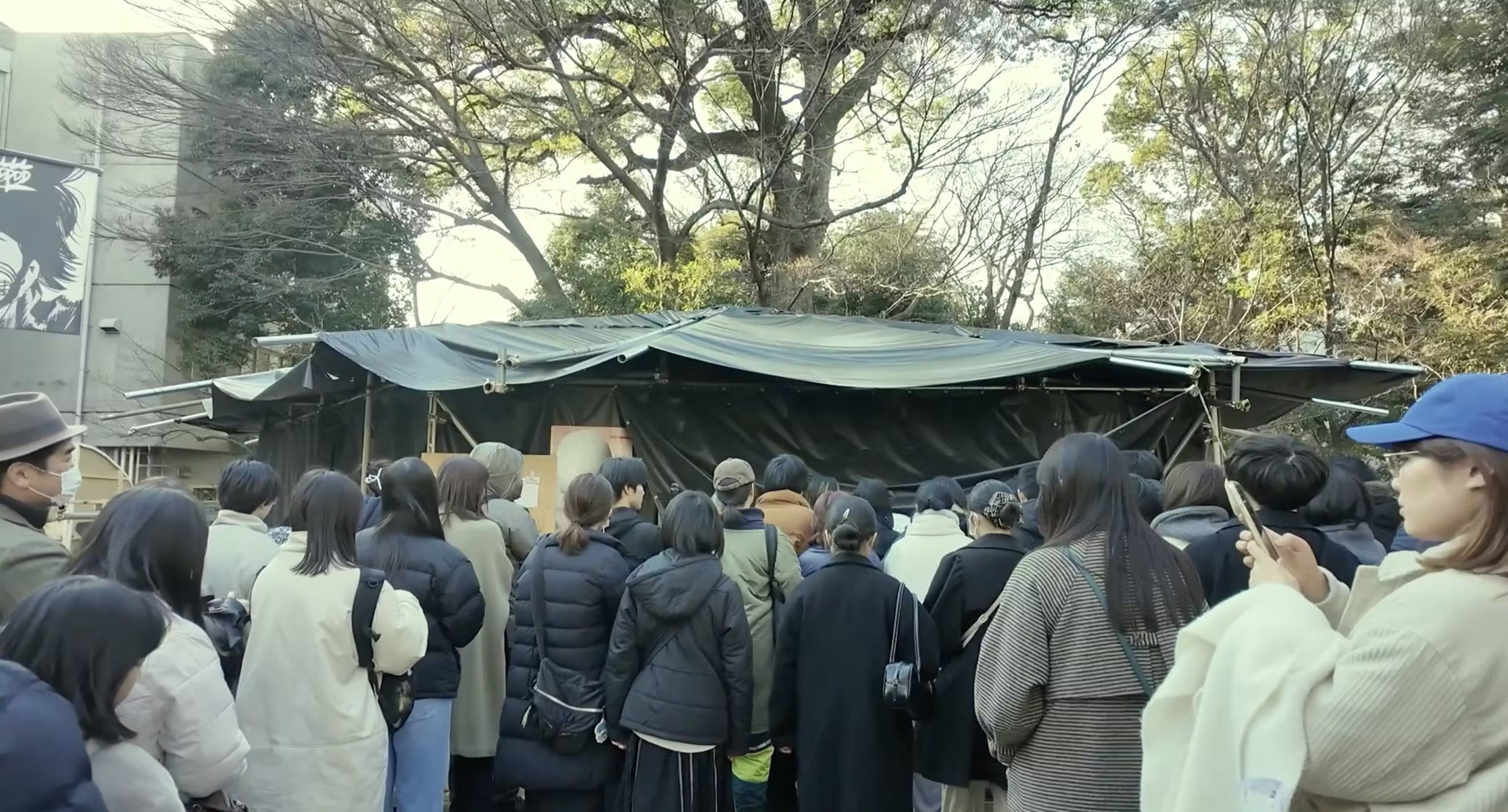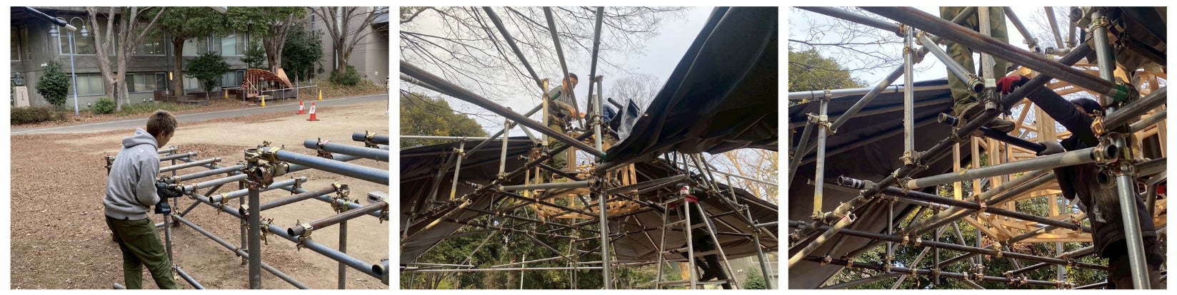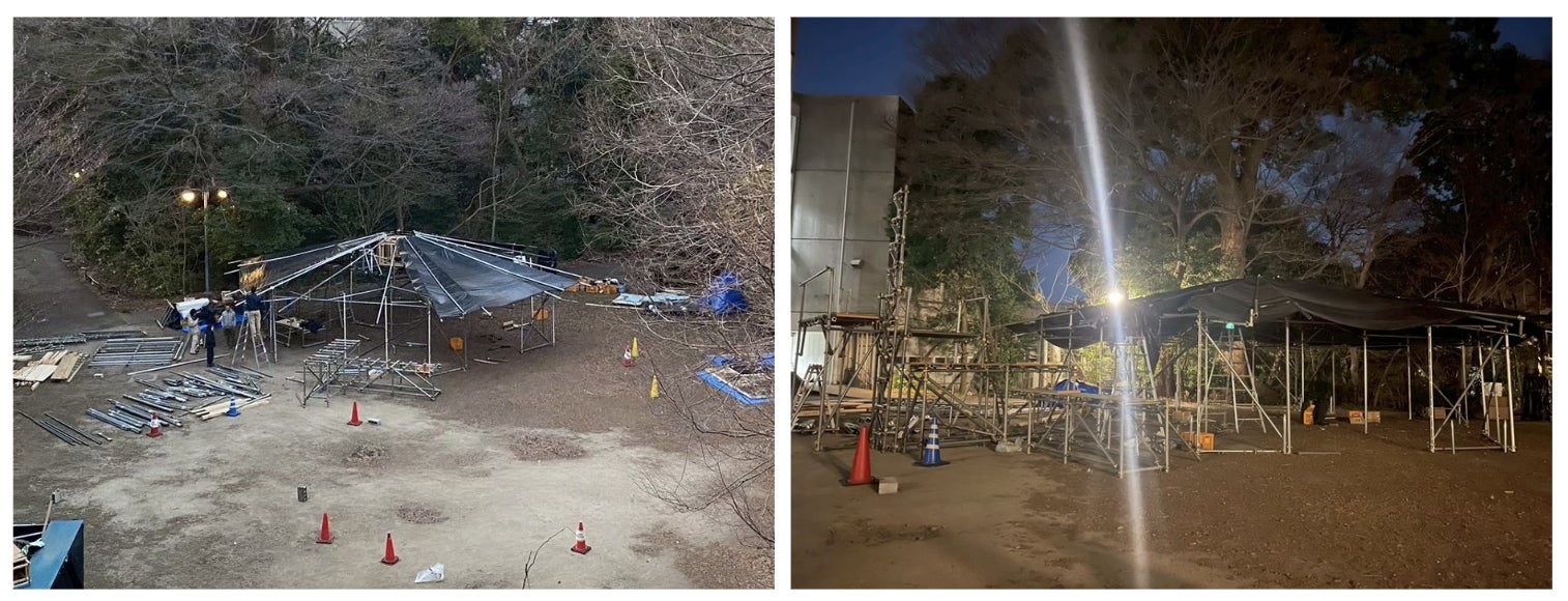 卒展公演でのテント建設中の様子