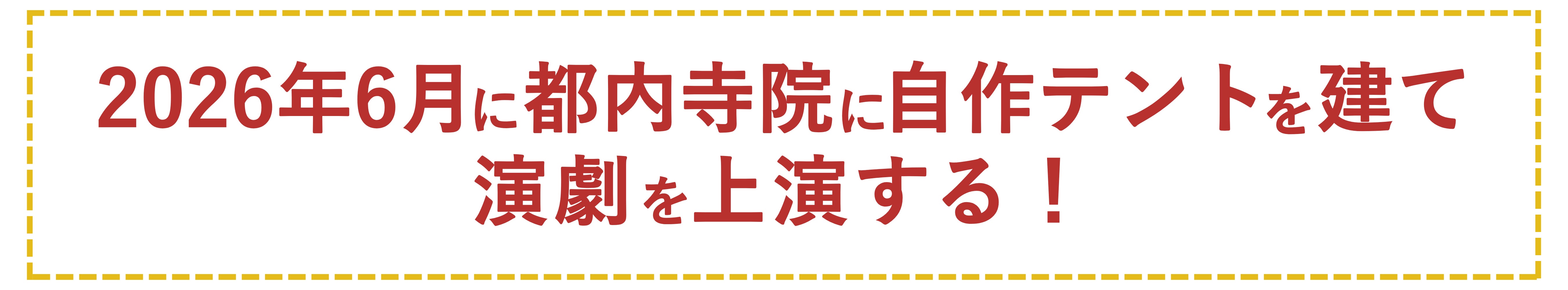 私たちは、お寺で【テント演劇】をします!全団員20代で構成された東京藝大発の劇団が、テントの建設から上演まで全て自力で行います。「既製の劇場ではできない大迫力の鑑賞体験」と、分断とデジタル化が進む時代だからこそ「人々が集い、直に熱を感じる空間」を、多くの人に届けます!