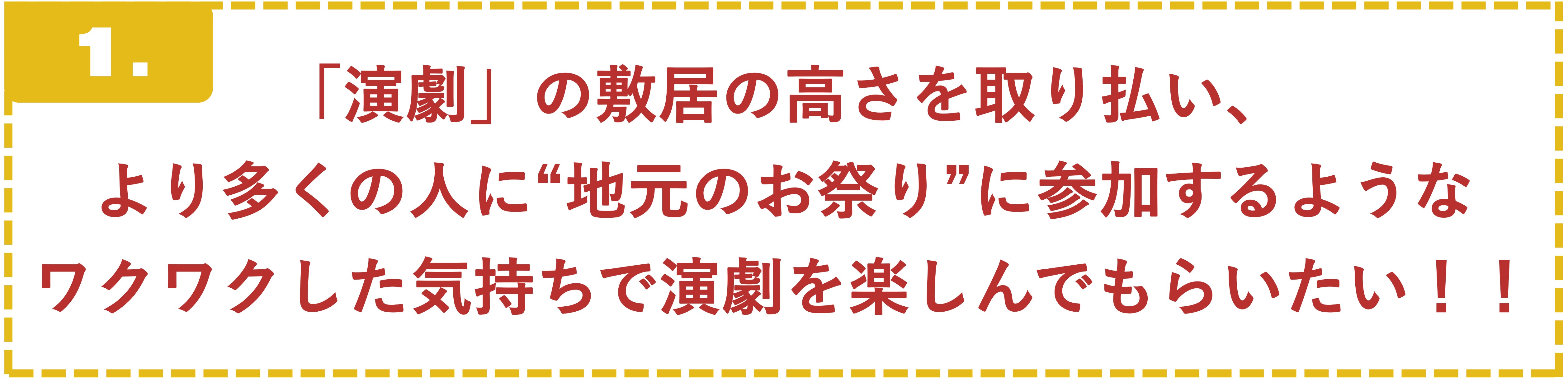演劇を「観る」だけでなく、「お祭り」のように楽しんでいただきたいと考えています。