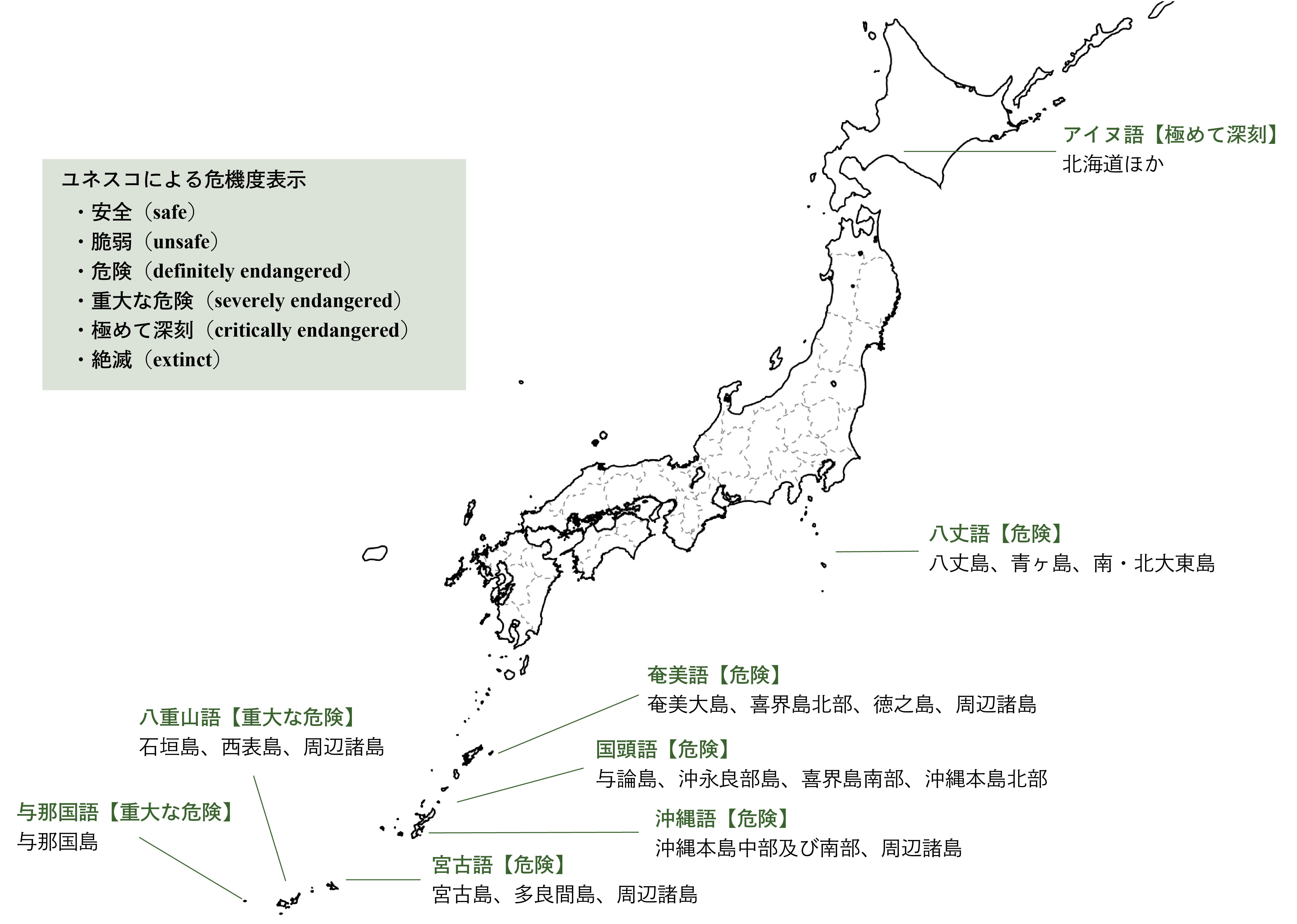2009年に国連教育科学文化機関(UNESCO)が発表した”Atlas of the World’s Languages in Danger”(第3版)で「消滅の危機がある言語」として掲載された言語の中には、沖縄語をはじめとした琉球諸語も含まれています。