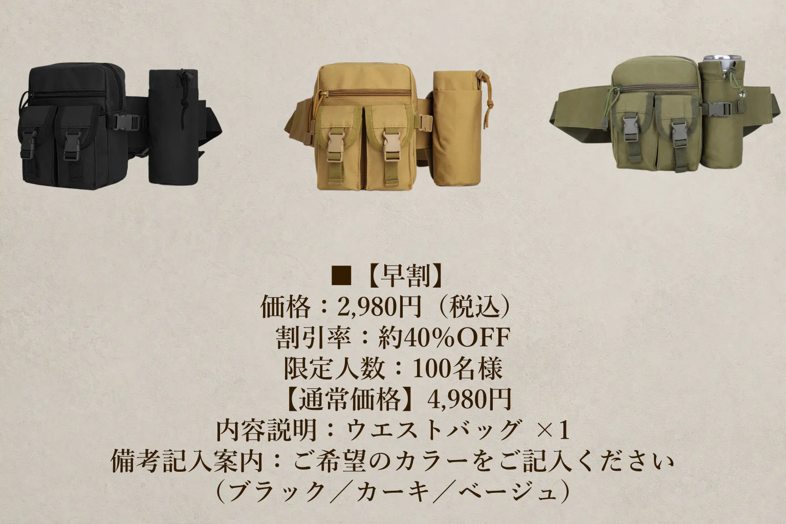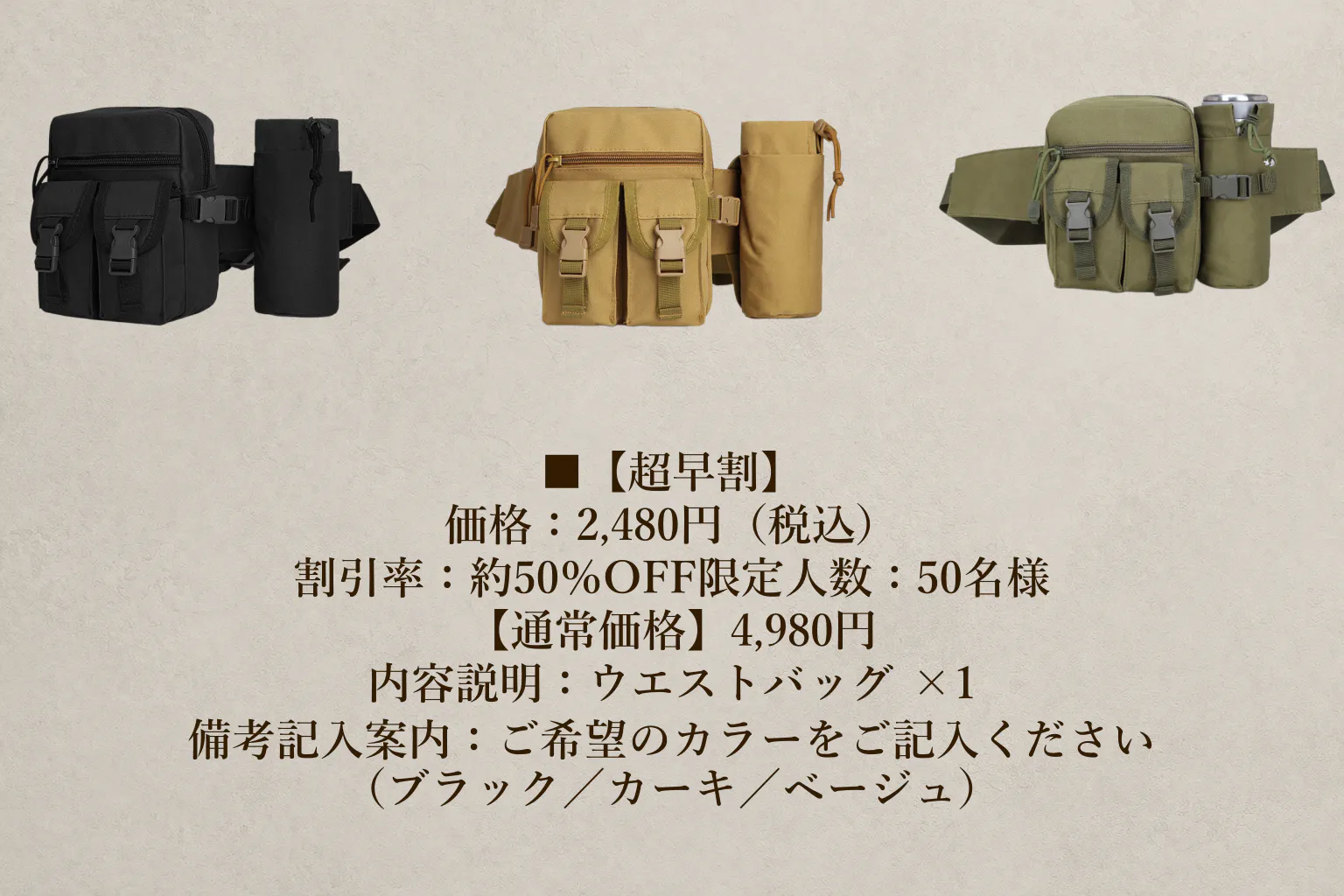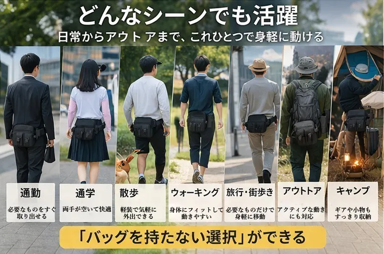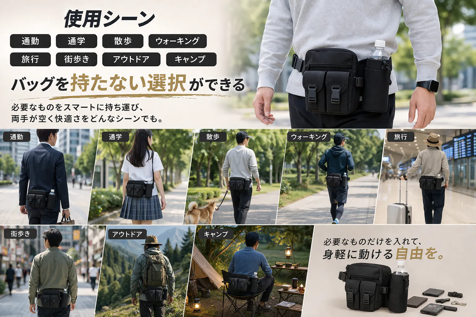 アウトドア,ウエストバッグ,ボディバッグ,ミニバッグ,軽量バッグ,散歩バッグ,EDC,ミリタリー,キャンプ,フェス,旅行,ウォーキング,コンパクトバッグ,多機能バッグ,手ぶら