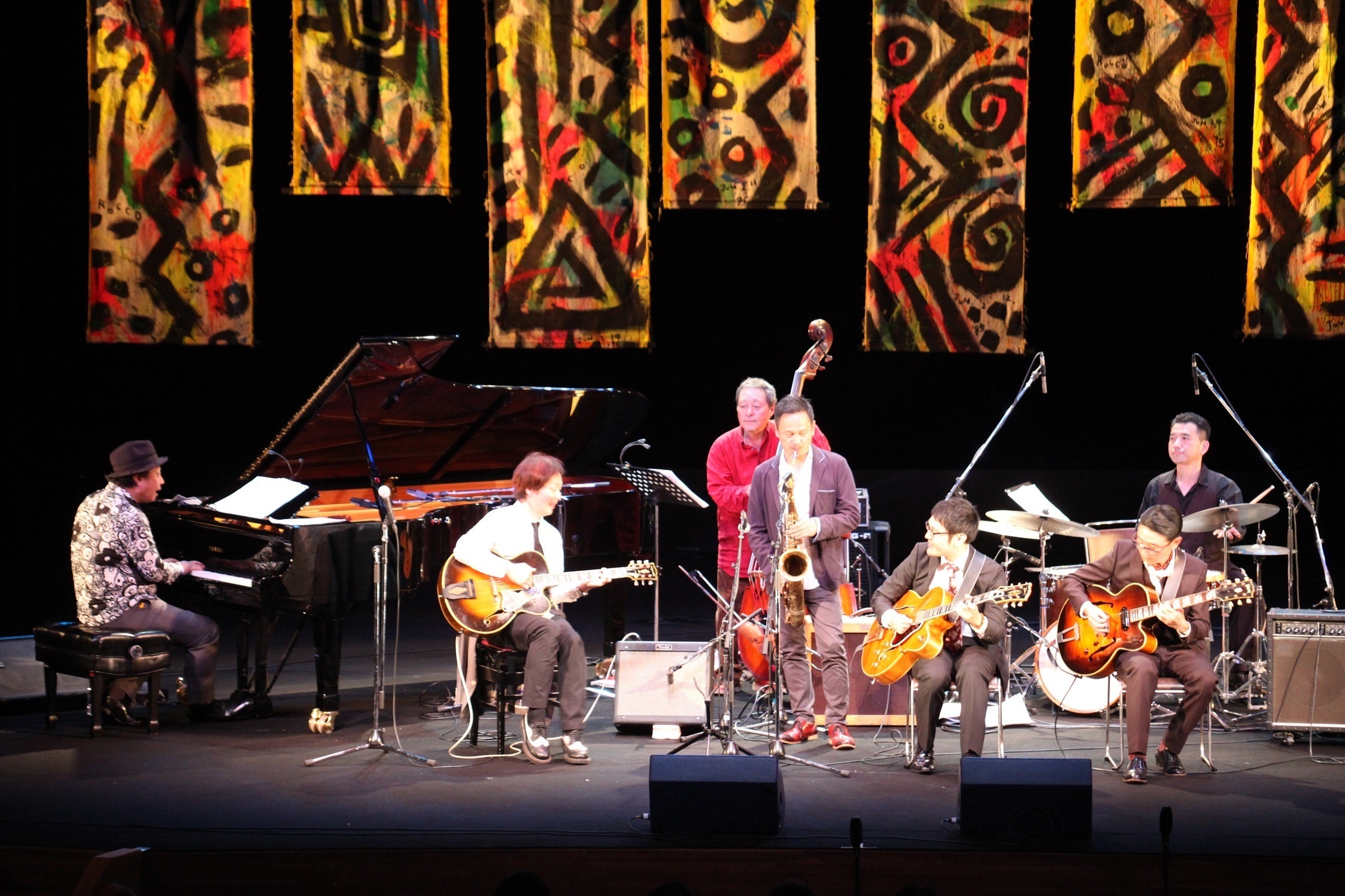 2019/02/14 14:13大変大変遅くなりましたが、緊急特別企画として生配信した「氷川丸船内特別ライブ」の上演曲をご紹介させていただきます。「氷川丸船内特別ライブ」日時:平成30年9月30日(日)13:30~14:15会場:日本郵船氷川丸船内 6番ハッチ出演:横濱JAZZオールスターズ今田勝(p) 、中村恵介(tp) 、向井滋春(tb)、渡辺典保(as)、中村誠一(ts)、細野よしひこ(g)、稲垣護(b)、守新治(ds) 、キャロル山崎(vo)【上演曲】・Night and Day・港が見える丘・Blue Light Yokokhama・Five Brothers・Anti Calypso・I Remember Clifford・Like Someone in Love・Easy Living・Autumn In New York・想い出のニューオリンズ・酒とバラの日々・Take the A Train配布予定だったパンフレット 当日、出演者が集合してから上演曲や演奏順を決め、リハーサル・本番と怒涛のタイムスケジュールでの生配信でした。中継には人の頭がたくさん映っていて、「邪魔だな~」と思った方も多かったかと思いますが、実は、これは、狭い船内で響きすぎることから、急遽、スタッフがTシャツを着て前に座ることで、音を吸収する役割を果たしていたのです。画面には映っていませんでしたが、周りの壁面に布をかけたりもしていました。そのような状況でのライブ配信でしたが、さすが横濱JAZZオールスターズの演奏は場所を選ぶことなく素晴らしい演奏を披露してくださいました。ところで、この船の『氷川丸』という名は、大宮にある 武蔵一宮「氷川神社」からいただいたそうです。かつて氷川丸の乗組員たちは、氷川神社に参拝するのが通例で、船内にも氷川神社のお札を納める神棚があったそうです。実行委員会でも夏前に安全祈願と成功祈願のお参りに行き、そして、先日、お礼参りに行ってきました。公演が中止になってしまったことは本当に残念でしたが、このプロジェクトで支援をいただいたおかげで、氷川丸の船内から中継ができたことを本当に感謝しています。次の四半世紀を目指し、新たな航海に出た「横濱 JAZZ PROMENADE 」を今後とも宜しくお願いいたします。横濱 JAZZ PROMENADE 実行委員会 一同 もっと見る氷川丸公演中止のお知らせと、緊急特別中継決定のお知らせ