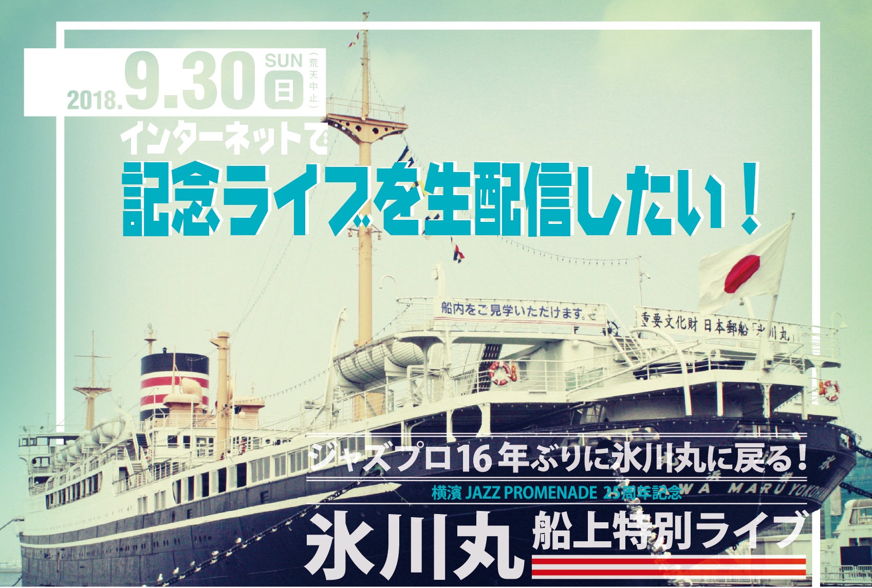 「ジャズプロ25周年!」「16年ぶりの氷川丸でのライブ!」「氷川丸が重要文化財になって初めてのライブ!!」
