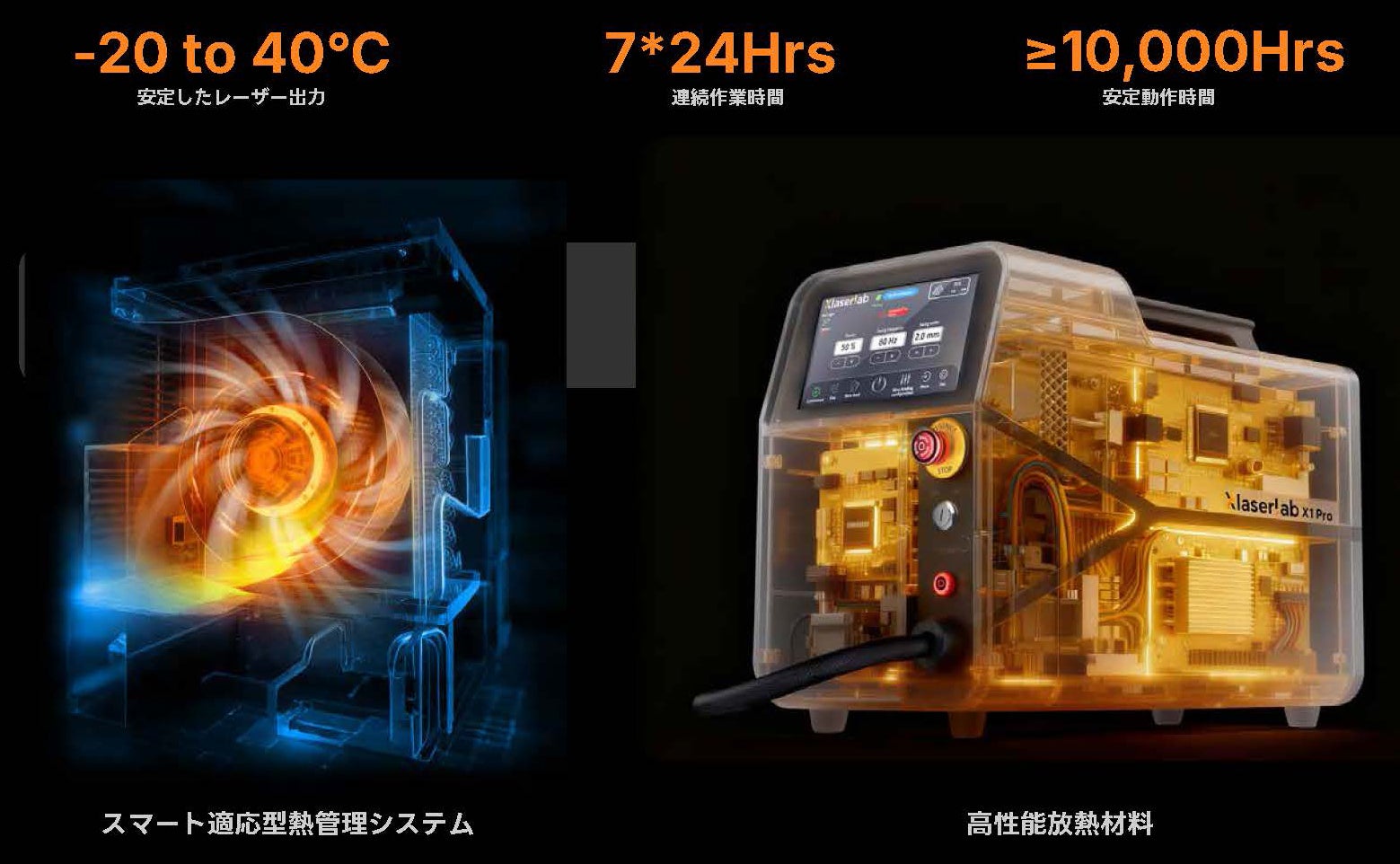 X1 Proは19kg(41.9ポンド)と、軽量化なレーザー溶接機でございます。