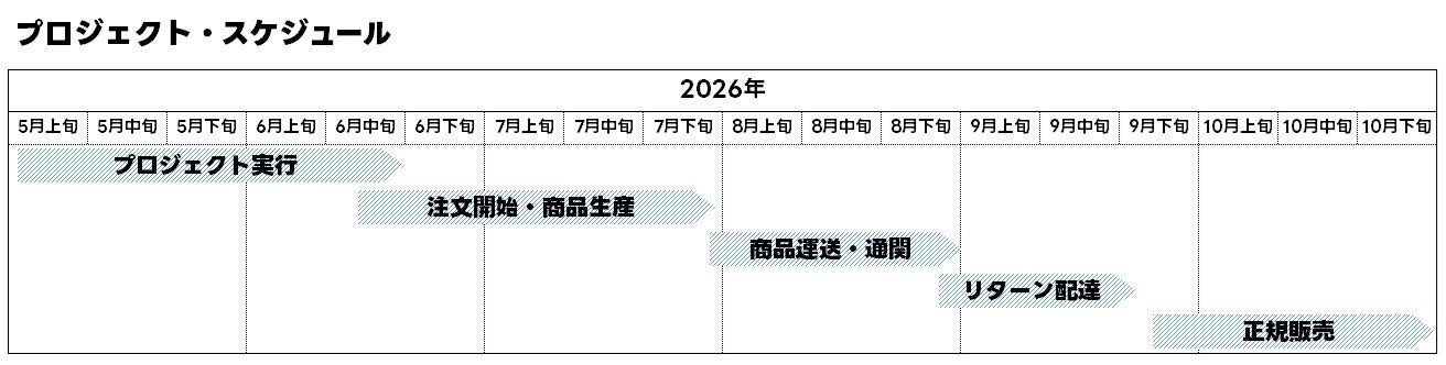 ※本文中に記載させていただいたスケジュールは、あくまでプロジェクト公開時点の予定です。ご支援の性質上、配送遅延のおそれがございます。