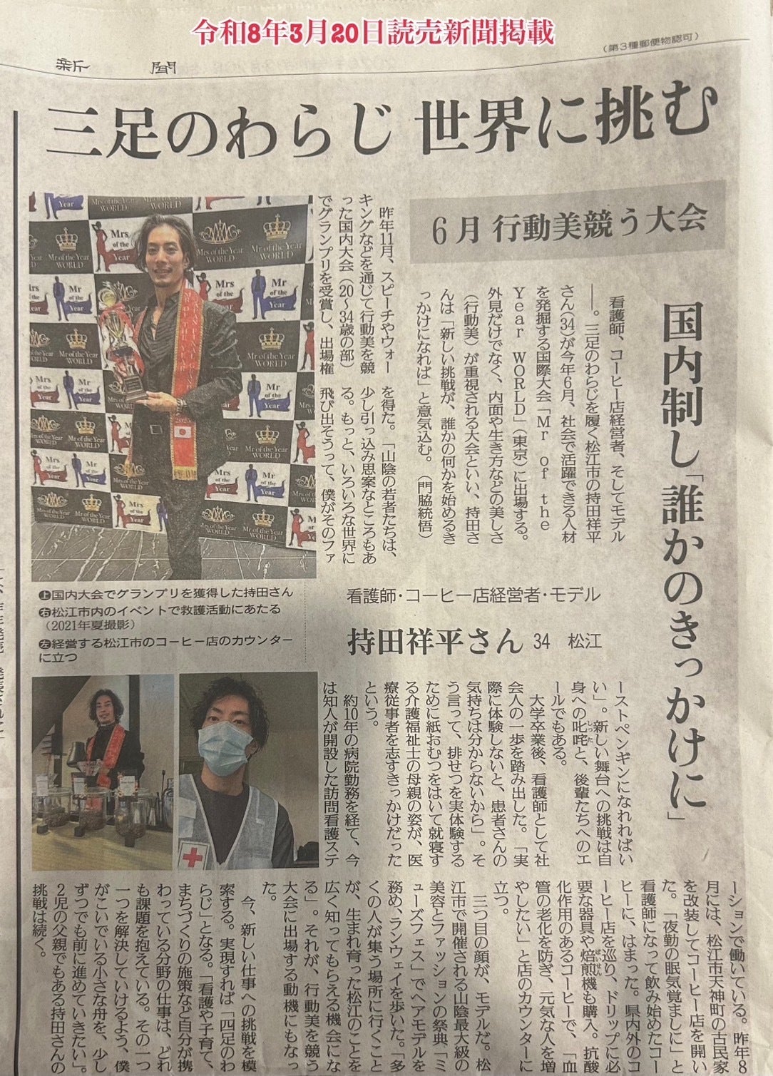 2026年6月、Mr of the Year WORLD 2026で世界一を目指します。これはただのコンテストではなく、【健康に生ききる社会】を世界に広げるための挑戦です。