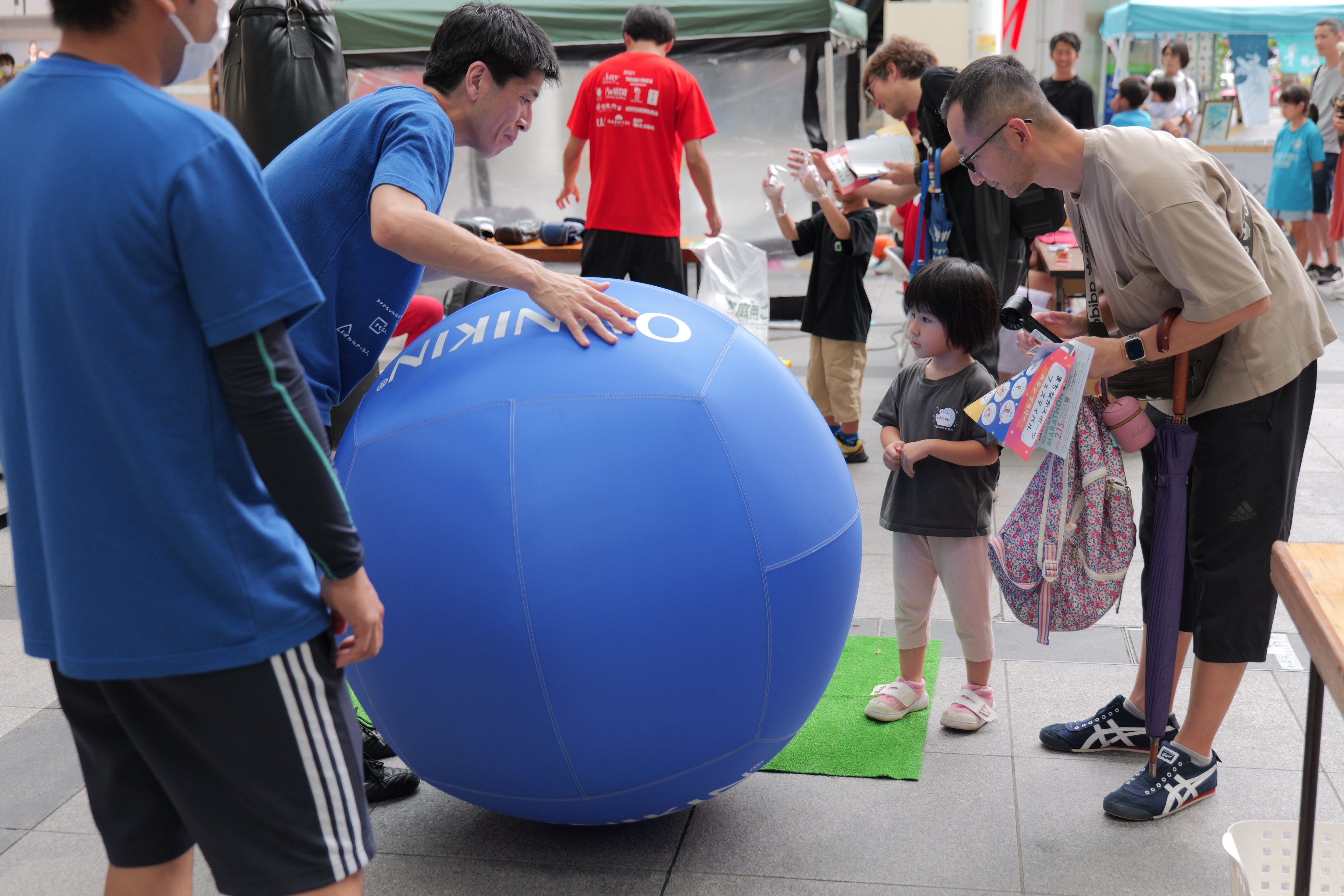 まちスポの会場には、陸上、バスケットボール、サッカー、野球、さらにはモルックやボクシングなど、多種多様なスポーツの体験ブースが並びます。