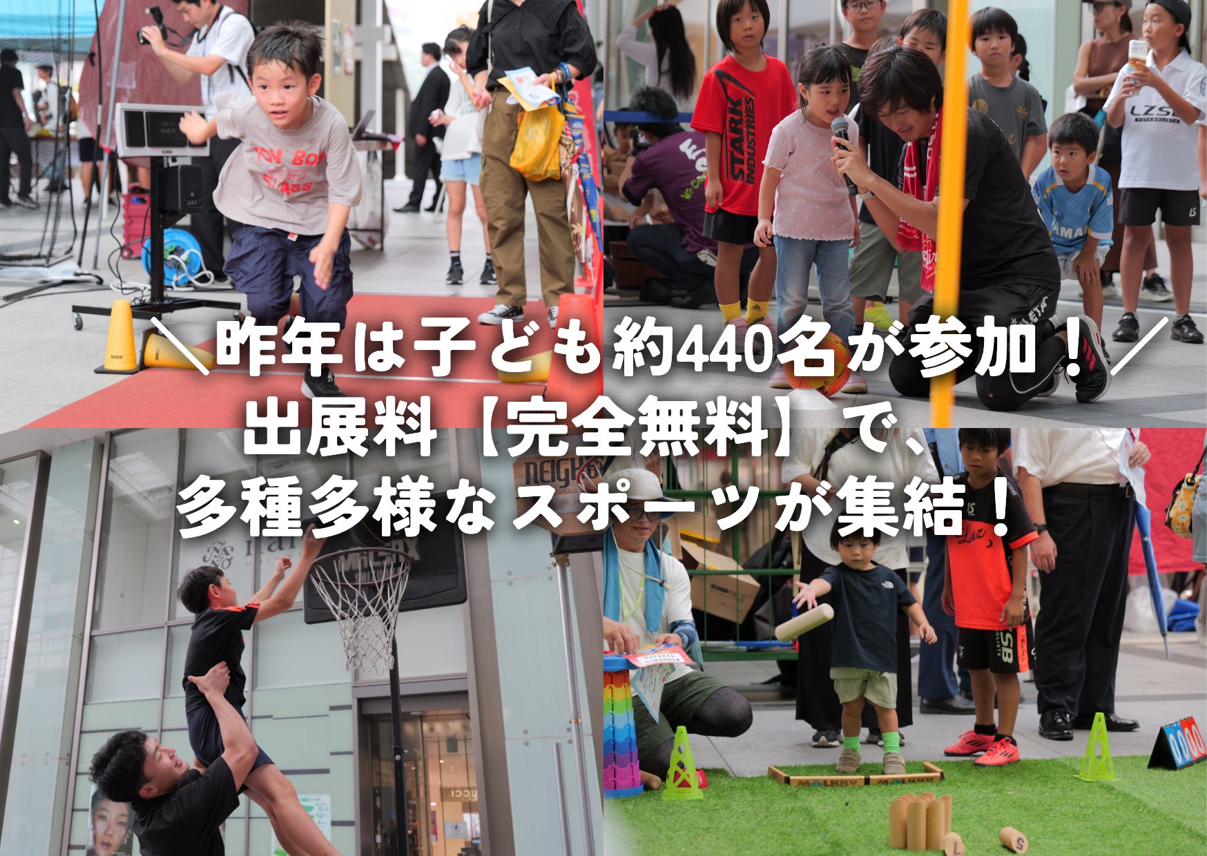 本イベントの大きな特徴は、子どもたちに多様なスポーツ(メジャーからマイナーまで)を提供するため、「地元のスポーツ団体の出展料・依頼料を完全無料(0円)」にしている点です。 また、参加する子どもたちからも参加費はいただきません。
