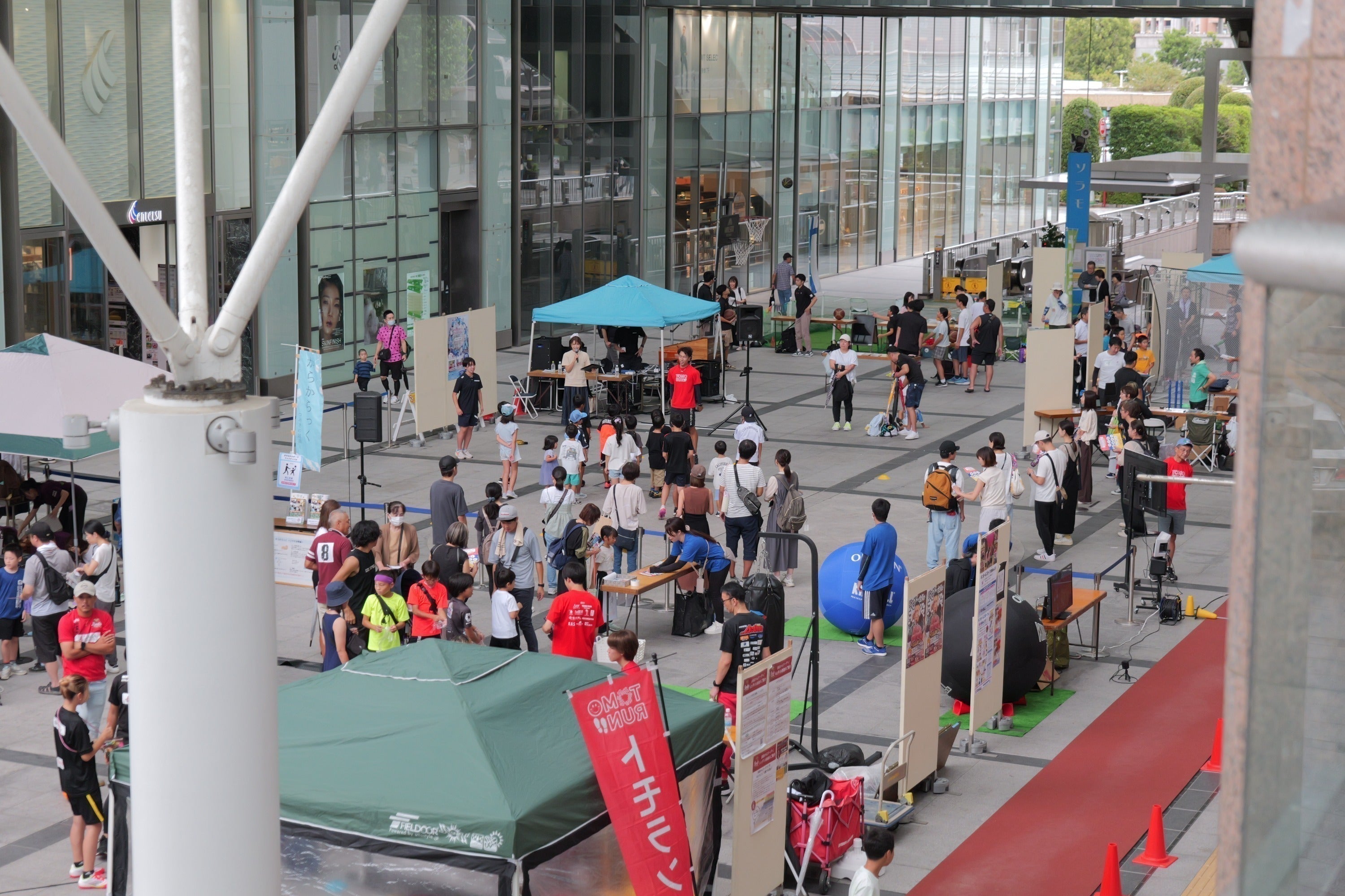 「浜松まちスポ」は、浜松駅前のギャラリーモール・ソラモなど、普段多くの人が行き交う「まちなか」のど真ん中に、人工芝やゴール、測定器を持ち込み、非日常のスポーツ空間を創り出すイベントです。