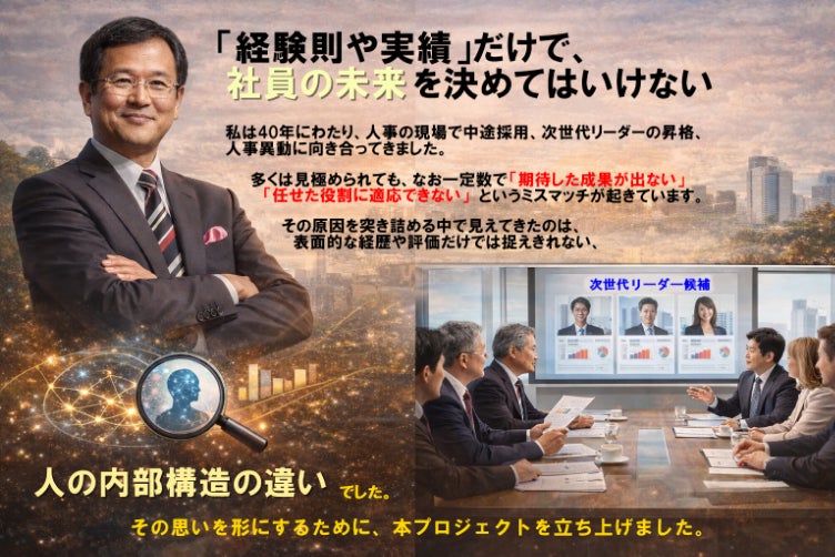 40年見つめ続けてきた人事の課題に、いま、ようやく正面から向き合う時が来ました。本プロジェクトは、単なるツール開発ではありません。人と組織の意思決定を変え、ミスマッチをなくし、一人ひとりの強みが正しく活かされる社会を実現する挑戦です。
