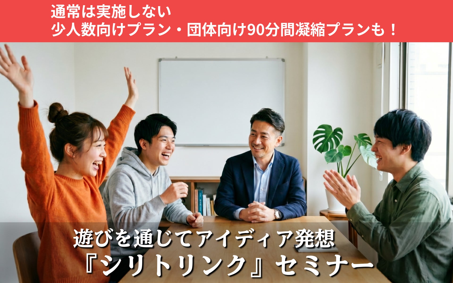 しりとりをベースにした遊びから、実践を通して発想法を学んでいただきます。大手メーカーなどで企画リーダーを務めたオシリトールはかせ考案のプログラムです。