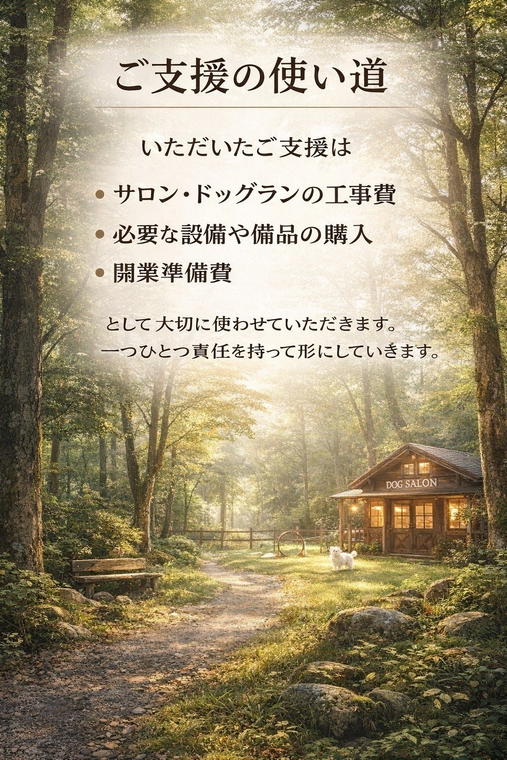 「わんどーむ」は、犬とその飼い主が安心して楽しめる場所を提供することを目的としています。このプロジェクトが実現すれば、多くの犬たちが幸せで健康な生活を送ることができるでしょう。皆さまのご支援とご協力が不可欠です。どうか、私たちのプロジェクトにご賛同いただき、温かい応援をよろしくお願いいたします。一緒に犬たちの未来を明るくしましょう!