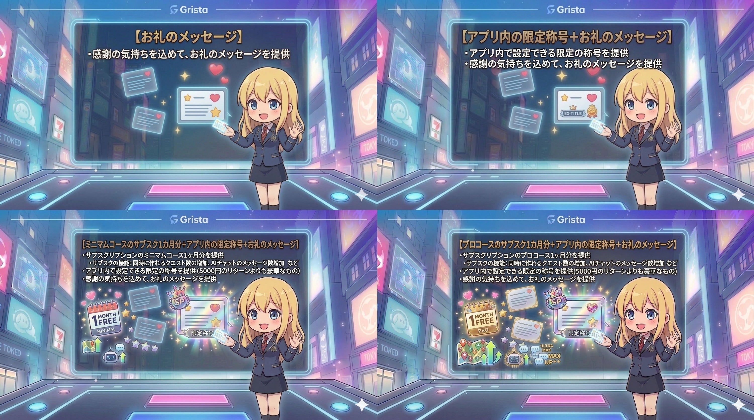 サブスクリプション:各種サブスクプランの1か月分の優待券をご提供いたします。