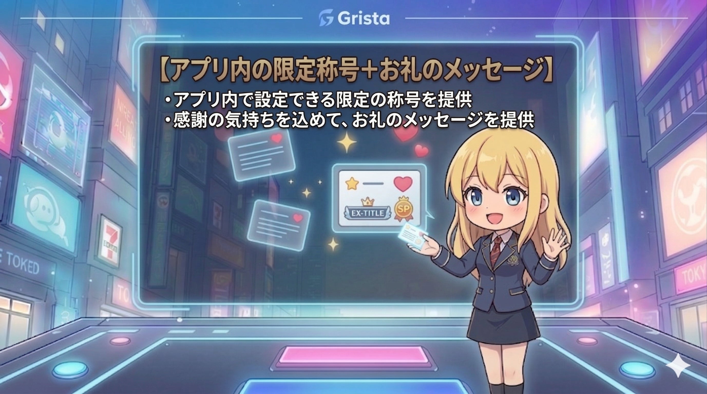 限定称号(アプリ内):クラウドファンディング支援者だけが設定できる特別な称号をご提供いたします。