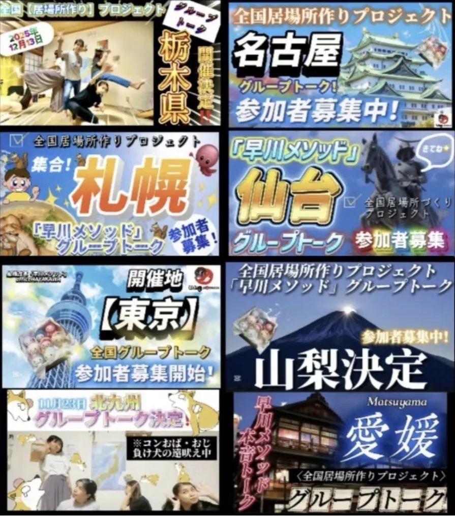 私たちは、早川メソッドによる「グループトーク」を全国各地で開催し、