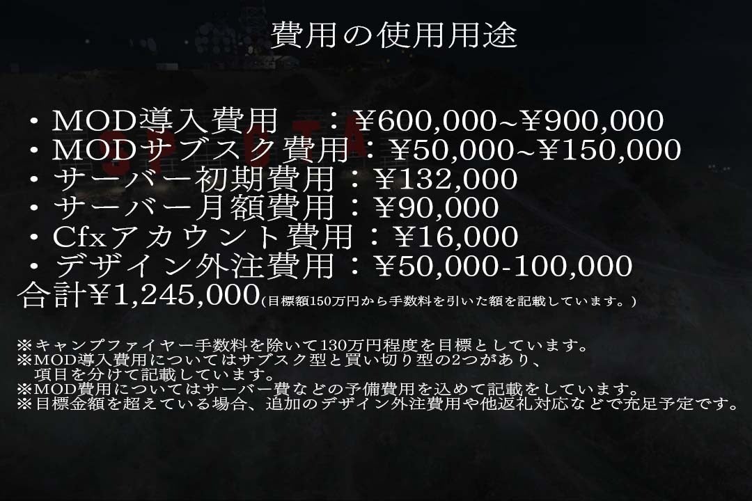 200〜250人が同時接続できる本格的なGTA RPサーバーを立ち上げます。単なるゲームサーバーではなく、配信者や活動者が集まり、新しい繋がりを生み出す場所です。私自身も配信者として活動する中で、仲間たちが自由に表現でき、大手配信者を目指す人たちが新しい出会いを得られる環境を作りたいと思い、本プロジェクトを発足しました。