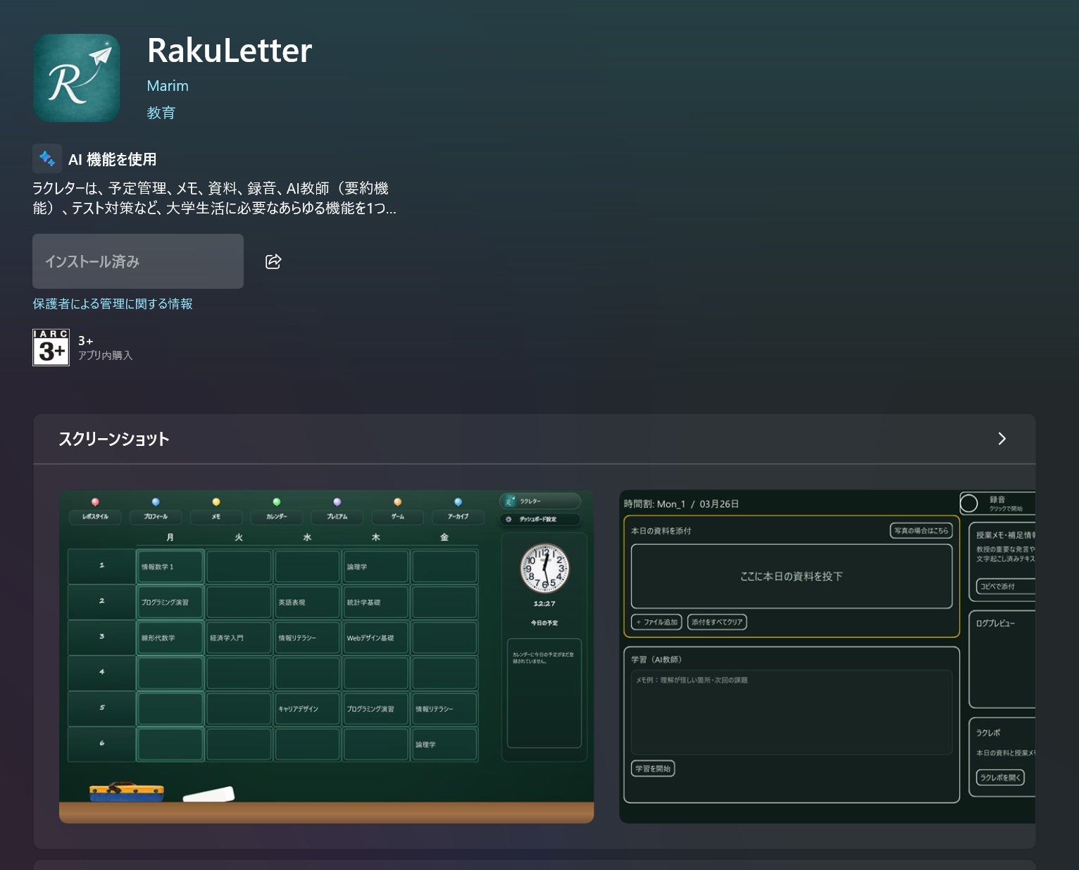現在、ラクレターはβ版として、Microsoftストアに掲載しています。