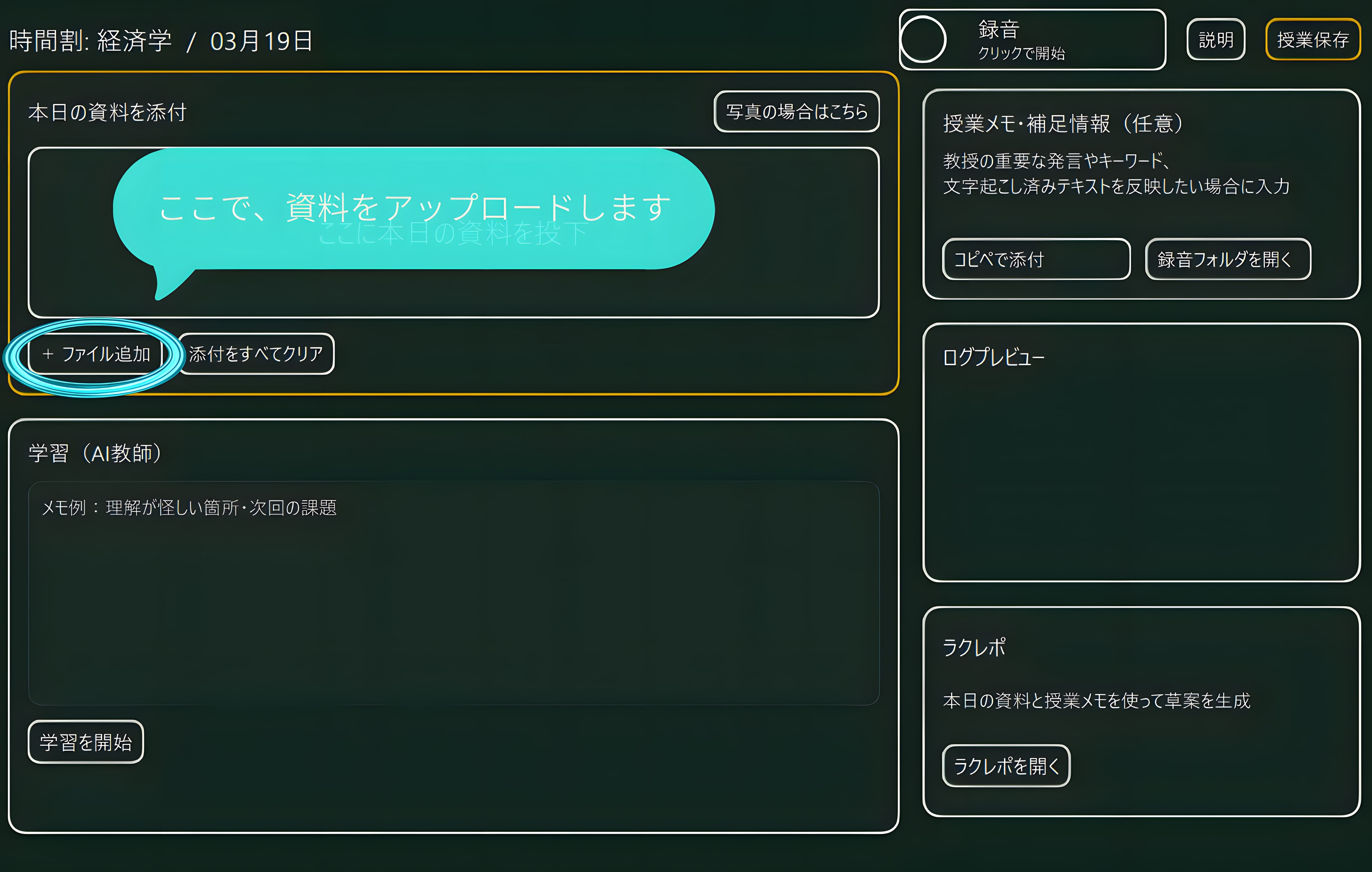 その日受けた講義を、その日限りで終わらせず、あとから何度でも見返せる形で残せること。日々の学びが散らばらず、未来の自分を助ける資産として積み上がっていくこと。そうした大学生活の土台になるツールにしていきたいと考えています。