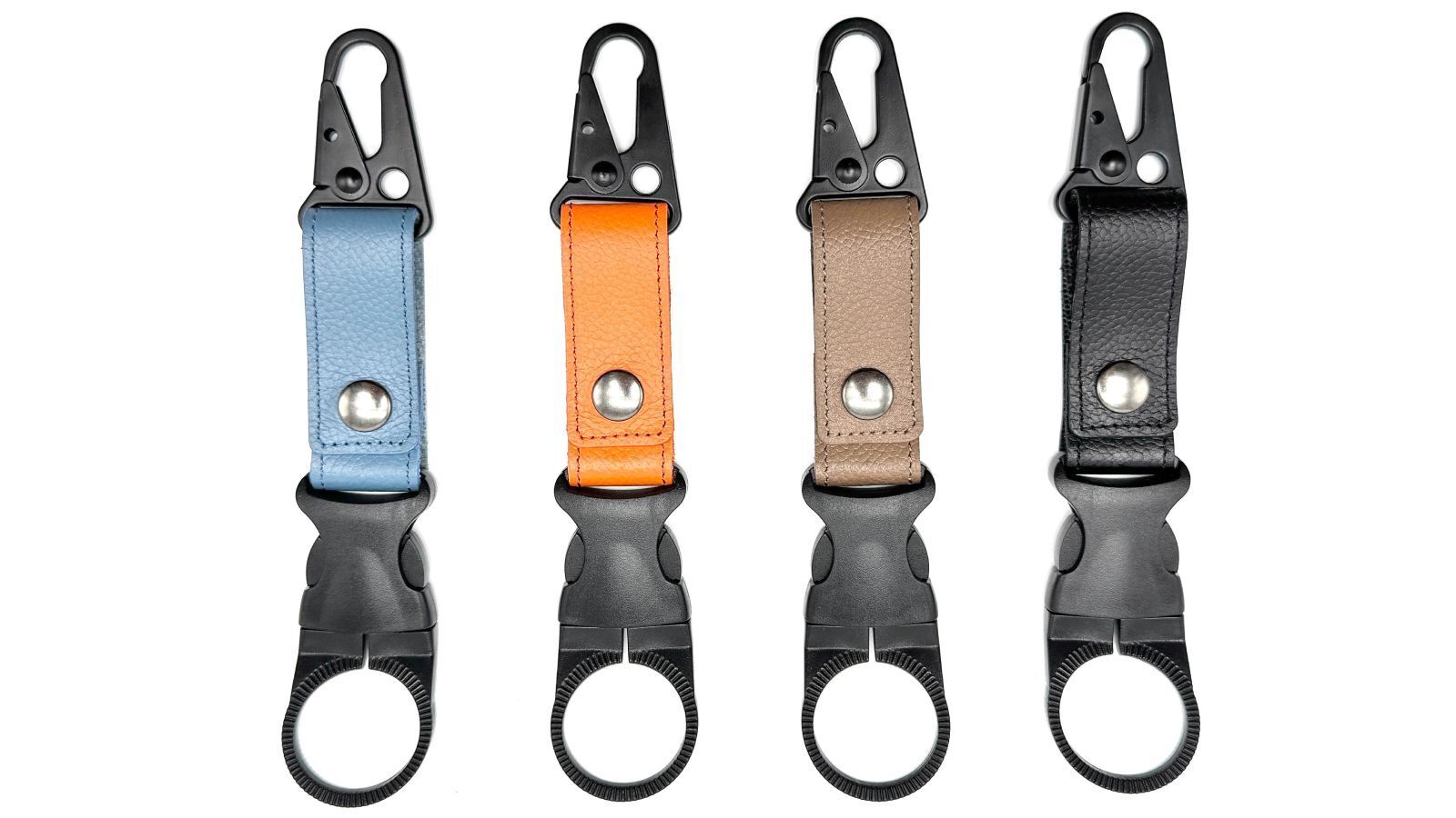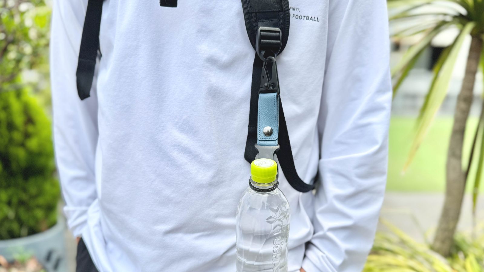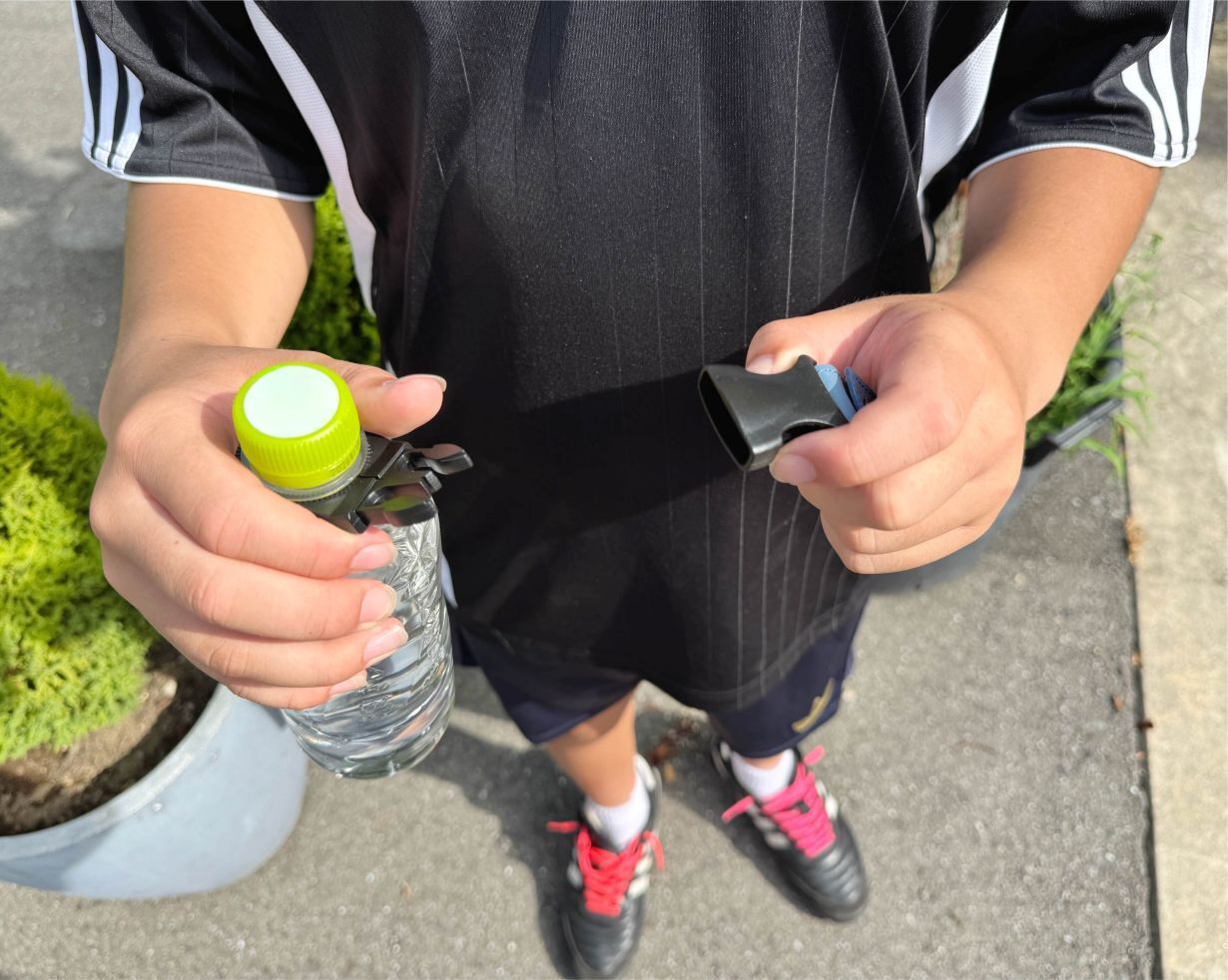 ペットボトルをキーホルダー感覚で腰から下げたり、鞄から下げたりできる、優れモノ。