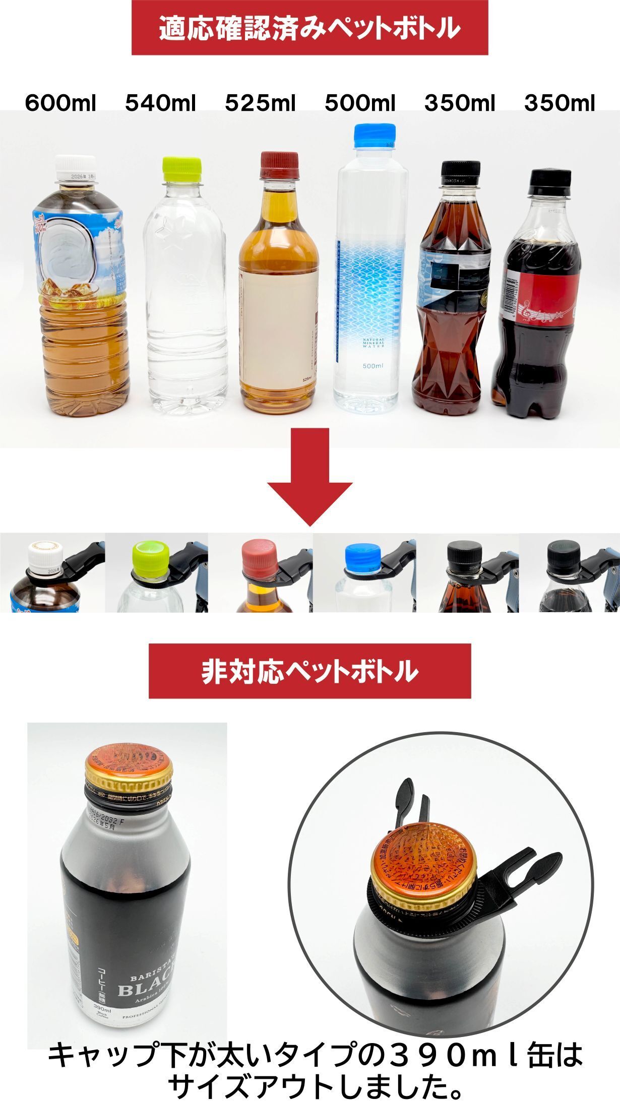 リングをペットボトルのキャップ下の溝に挟むだけ!!