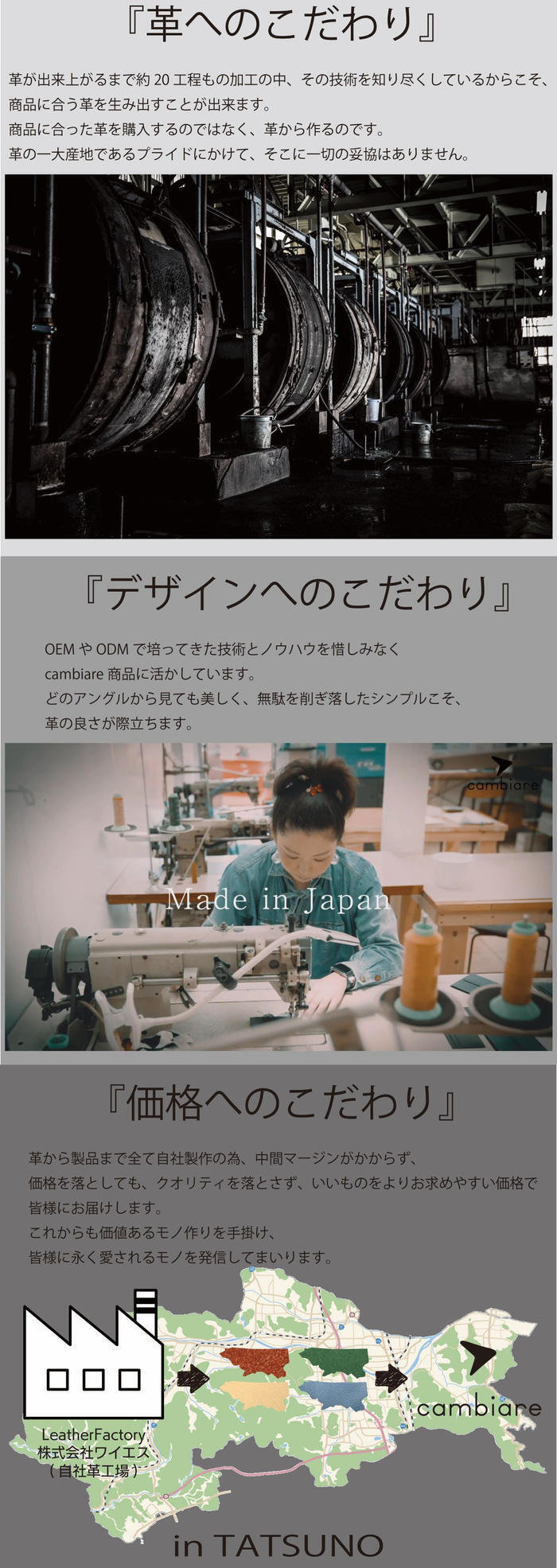 そんな革の産地から生まれた、cambiare~カンヴィアーレ~製品の企画から制作まで全て担うのは、革を熟知した職人です。