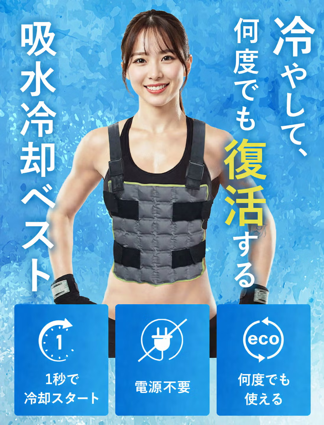本製品は水を含ませて冷やすだけの簡単仕様。難しい操作は一切不要で、すぐに使えるのが魅力です。シンプルながらも、しっかりと体の熱をやわらげます。